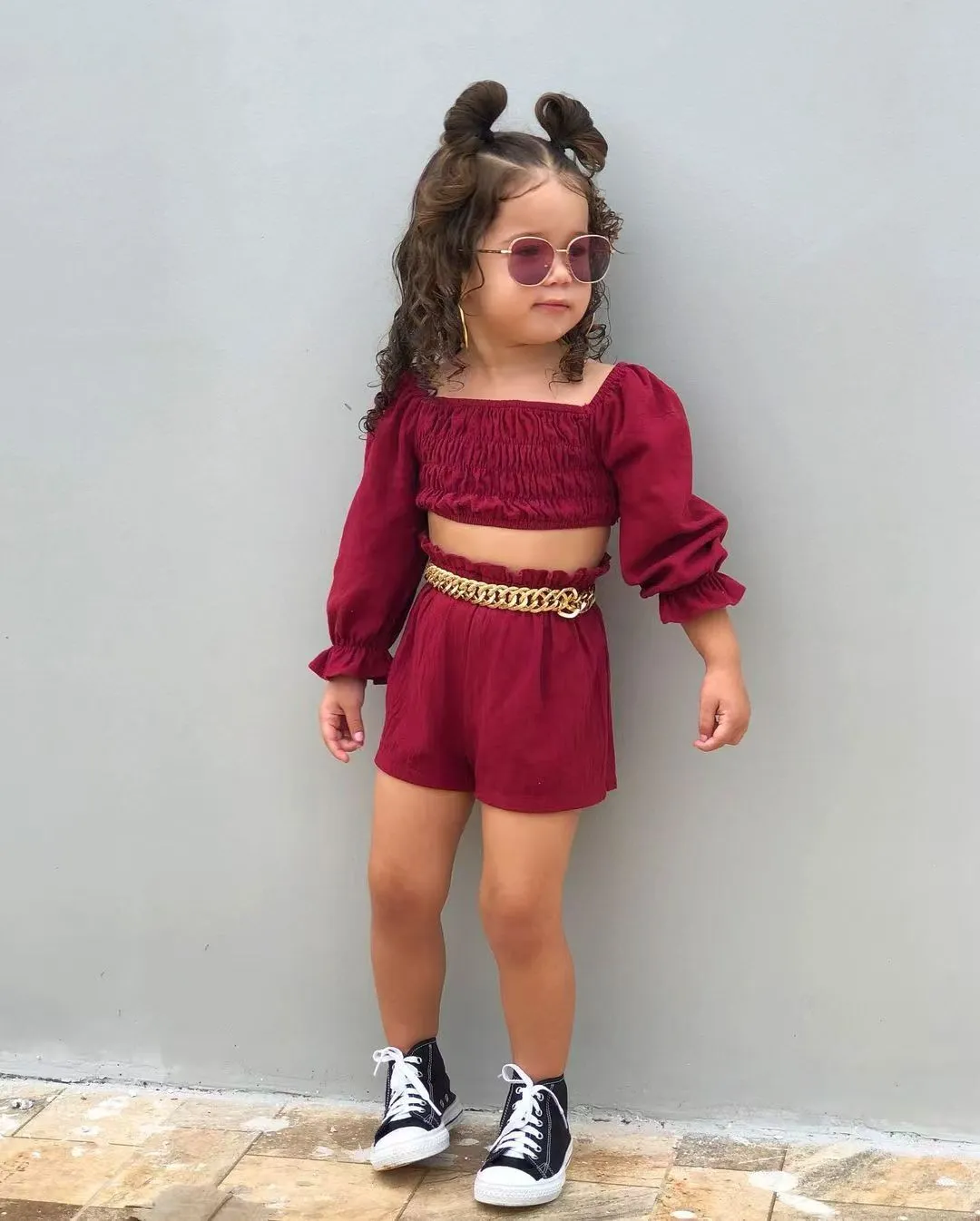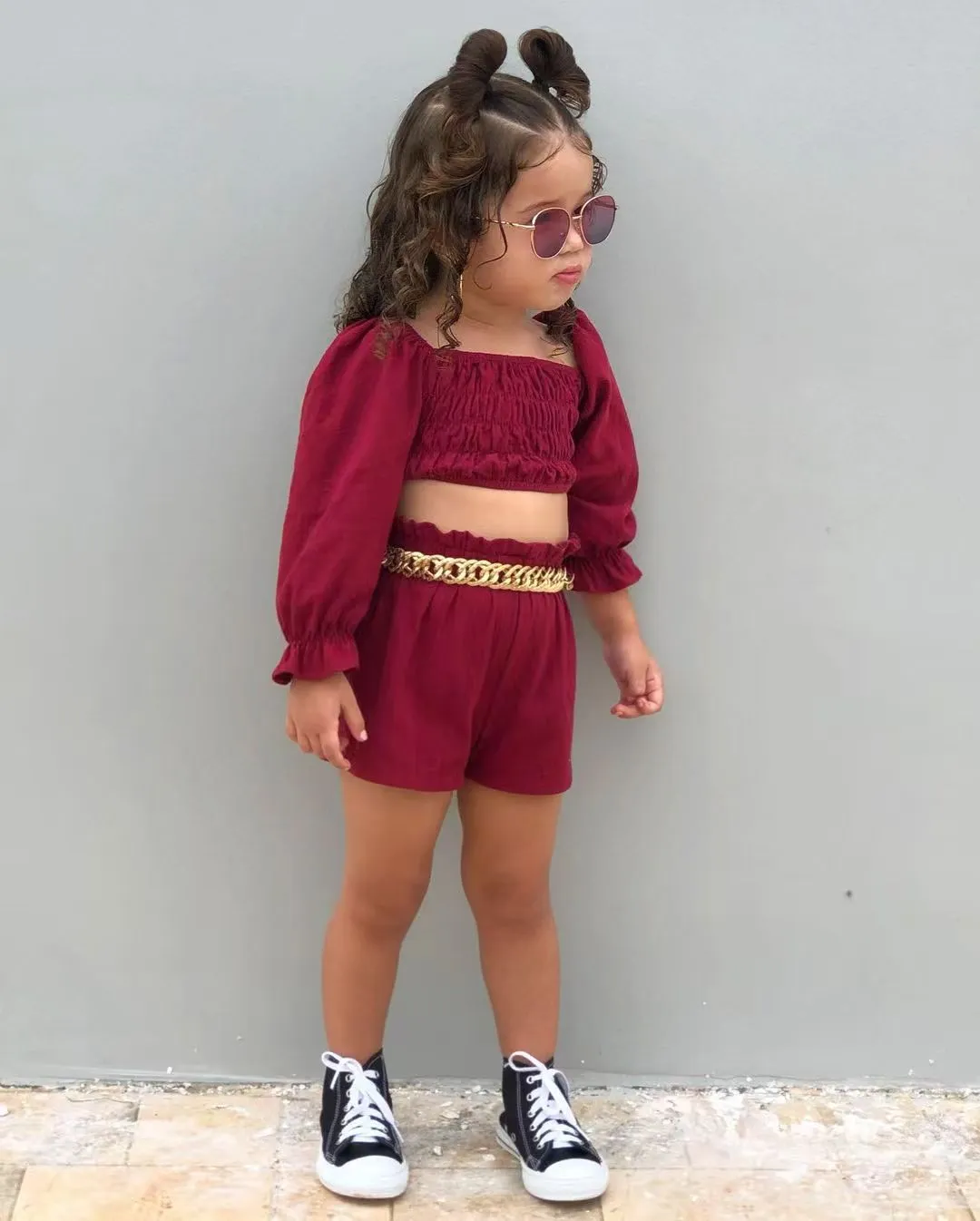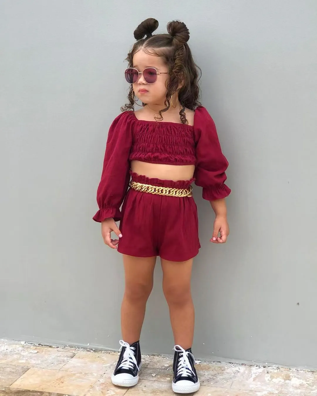 European And American Fashion Off-shoulder Puff Sleeve Top Shorts Suit Ins