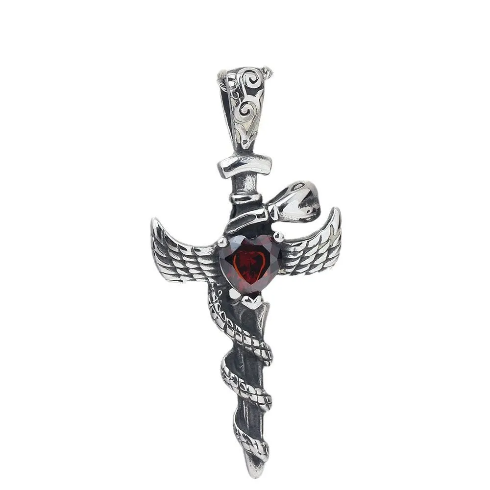 European And American Personalized Vintage Wings Cross Men's Titanium Steel Pendant Necklace
