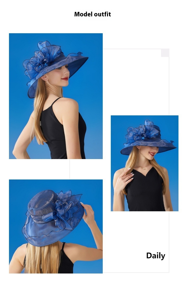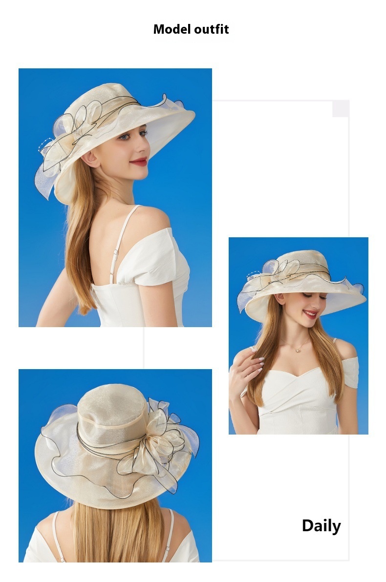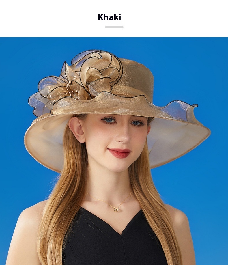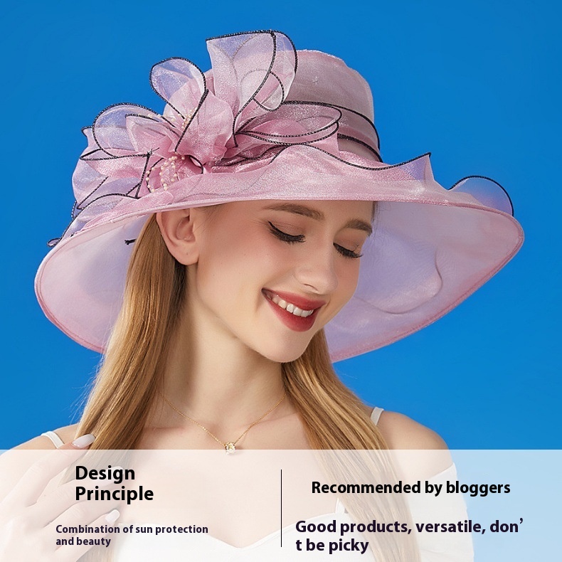 European And American Sun Protection Hat Women's Organza Solid Color Large Flower Sun Hat British Lady Elegant Graceful