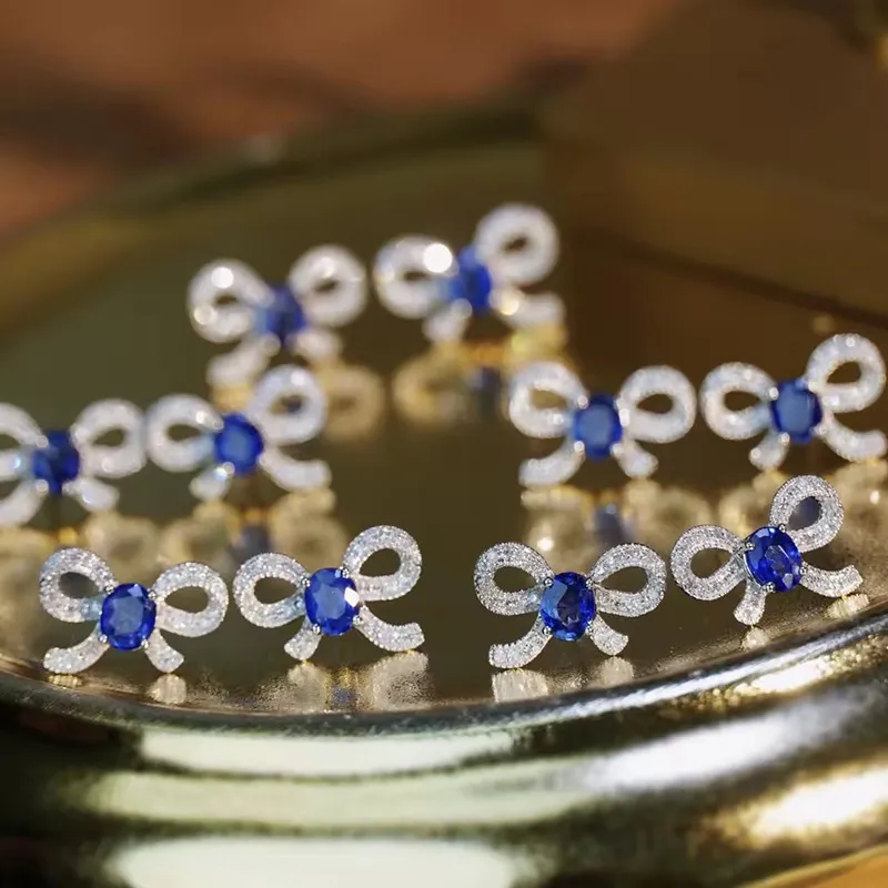 Exquisite Bow Stud Earrings Micro Inlaid Zircon