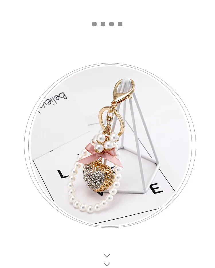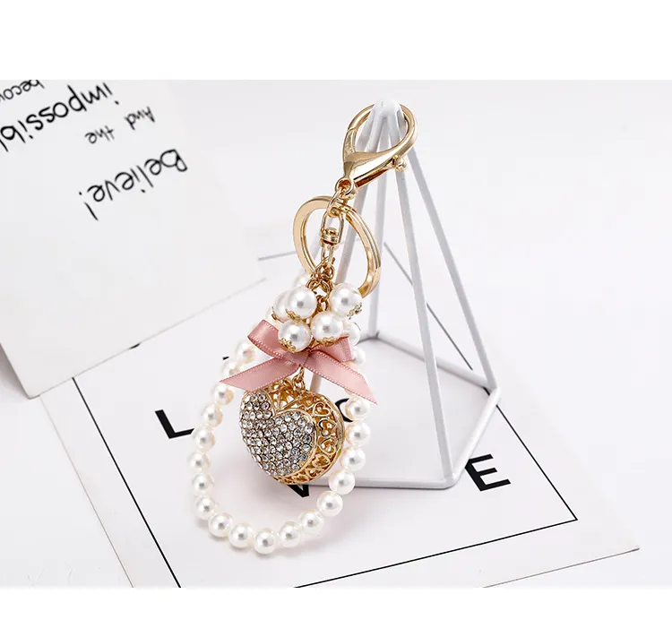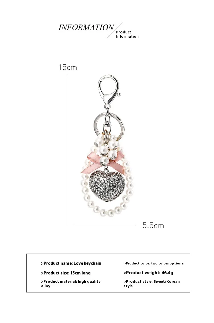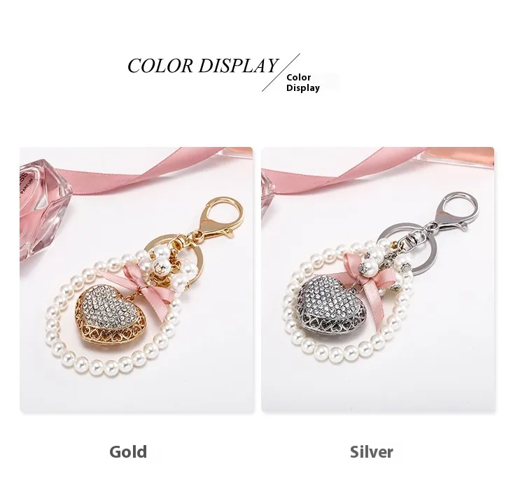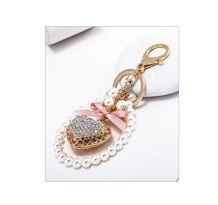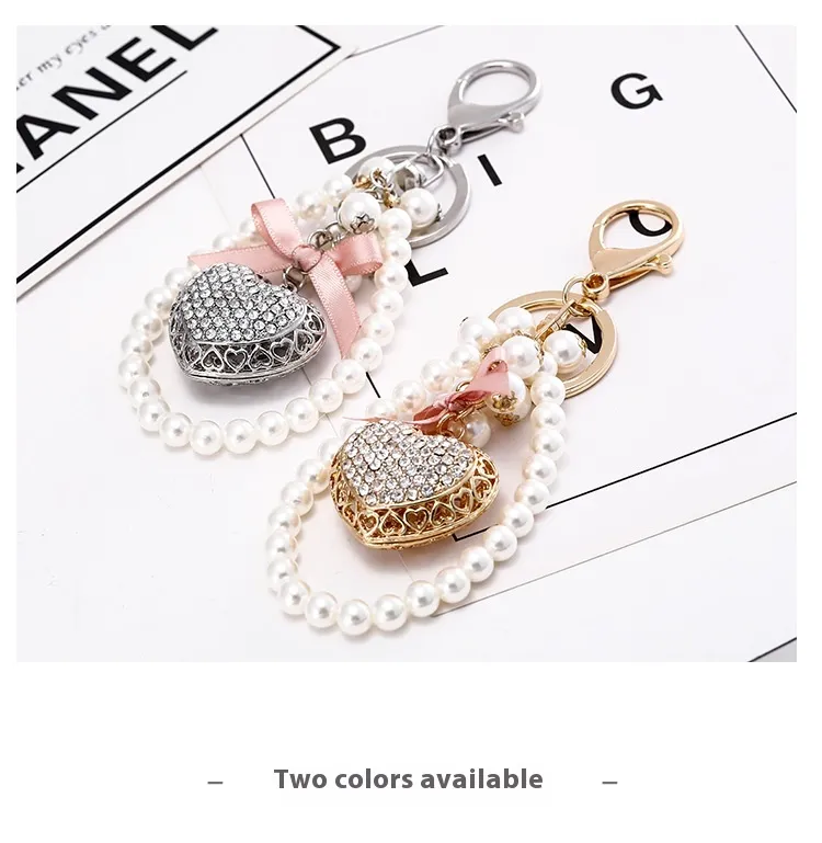 Exquisite Heart-shaped Keychain Full Diamond Peach Heart Pearl Pendant