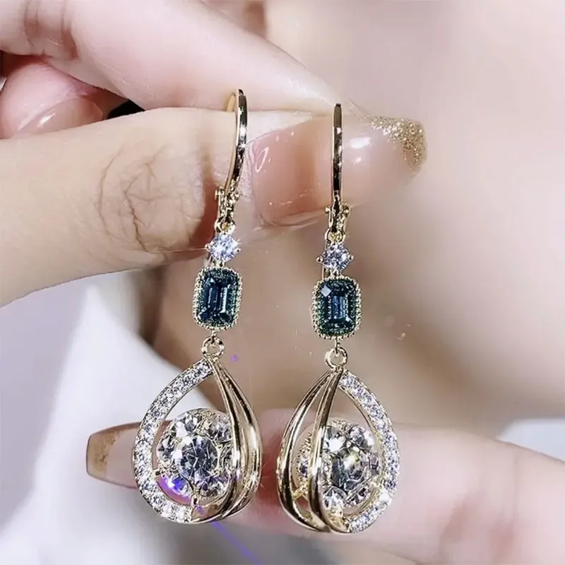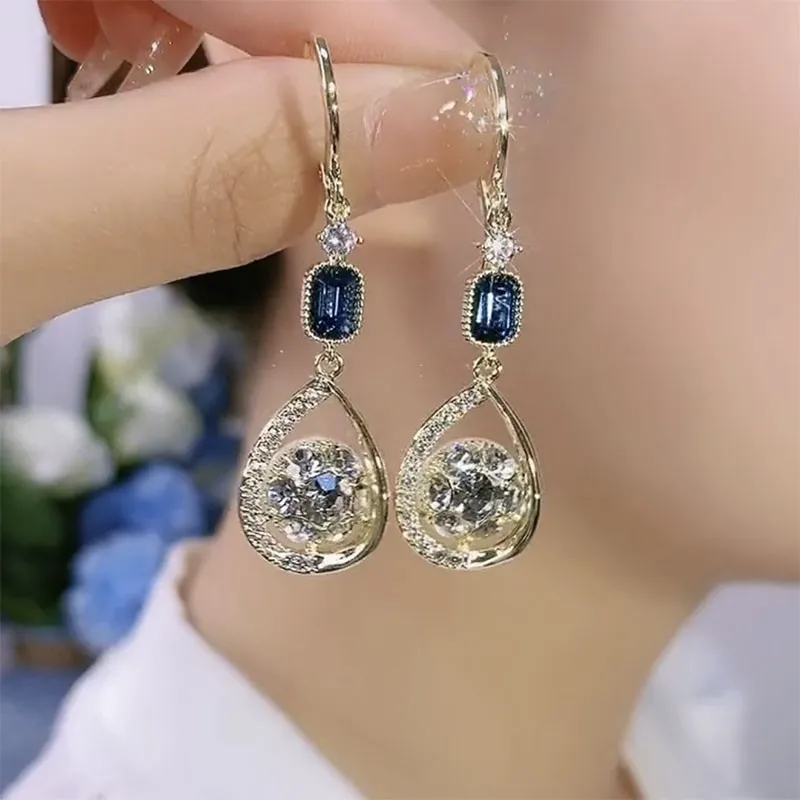 Exquisite Light Luxury High-grade Diamond-embedded Water Drop Earrings