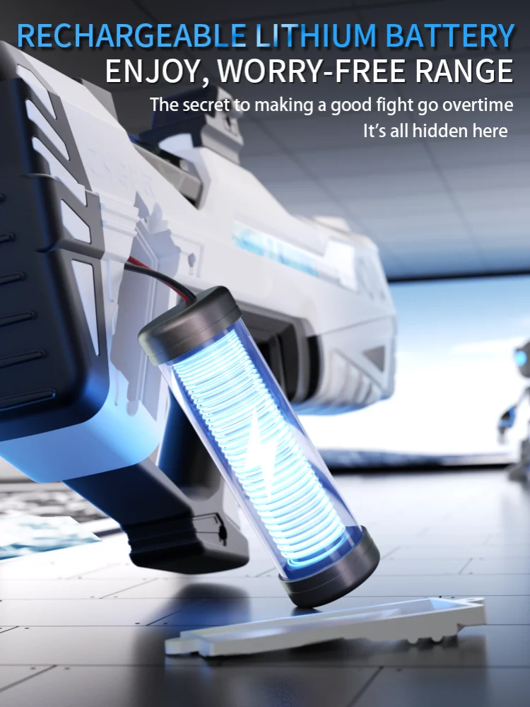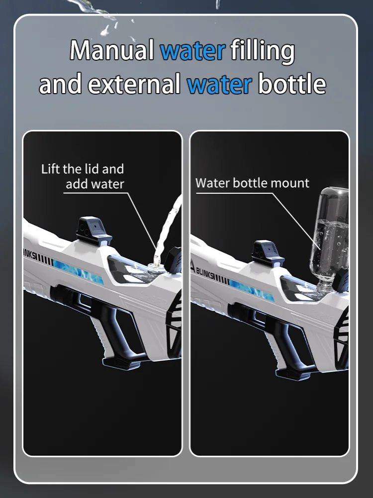 Features: **Unleash the Fun with High-Pressure Power** Immerse yourself in the excitement of summer with the Electric Water Gun Toys, a must-have for every child's collection of beach toys. This high-pressure, strong automatic water gun is not just a toy; it's a summer adventure waiting to happen. The ergonomic grip design ensures a comfortable and secure hold, while the cool LED light feature adds an extra layer of fun to your water battles. Whether you're at the beach, in the backyard, or at a pool party, this electric water gun is the ultimate companion for hours of splashing fun. **Built for Durability and Convenience** Crafted from robust ABS plastic, this electric water gun is built to withstand the rigors of playtime. The rechargeable battery and included USB charging cable make it easy to keep the fun going without interruption. The automatic water spray feature ensures a steady stream of water, making it perfect for target practice or simply cooling off on a hot day. The lightweight design and easy-to-use controls make it accessible for children of all ages, making it a perfect children's toy gift. **A Gift That Keeps on Giving** Looking for a gift that's both practical and exciting? The Electric Water Gun Toys are the perfect choice. Not only do they provide endless hours of entertainment, but they also encourage outdoor play and social interaction. This summer toy is not just a water gun; it's a gateway to memories that will last a lifetime. With its high-pressure, strong automatic water spray, it's sure to be a hit at any beach or pool party, making it a thoughtful and enjoyable children's toy gift.