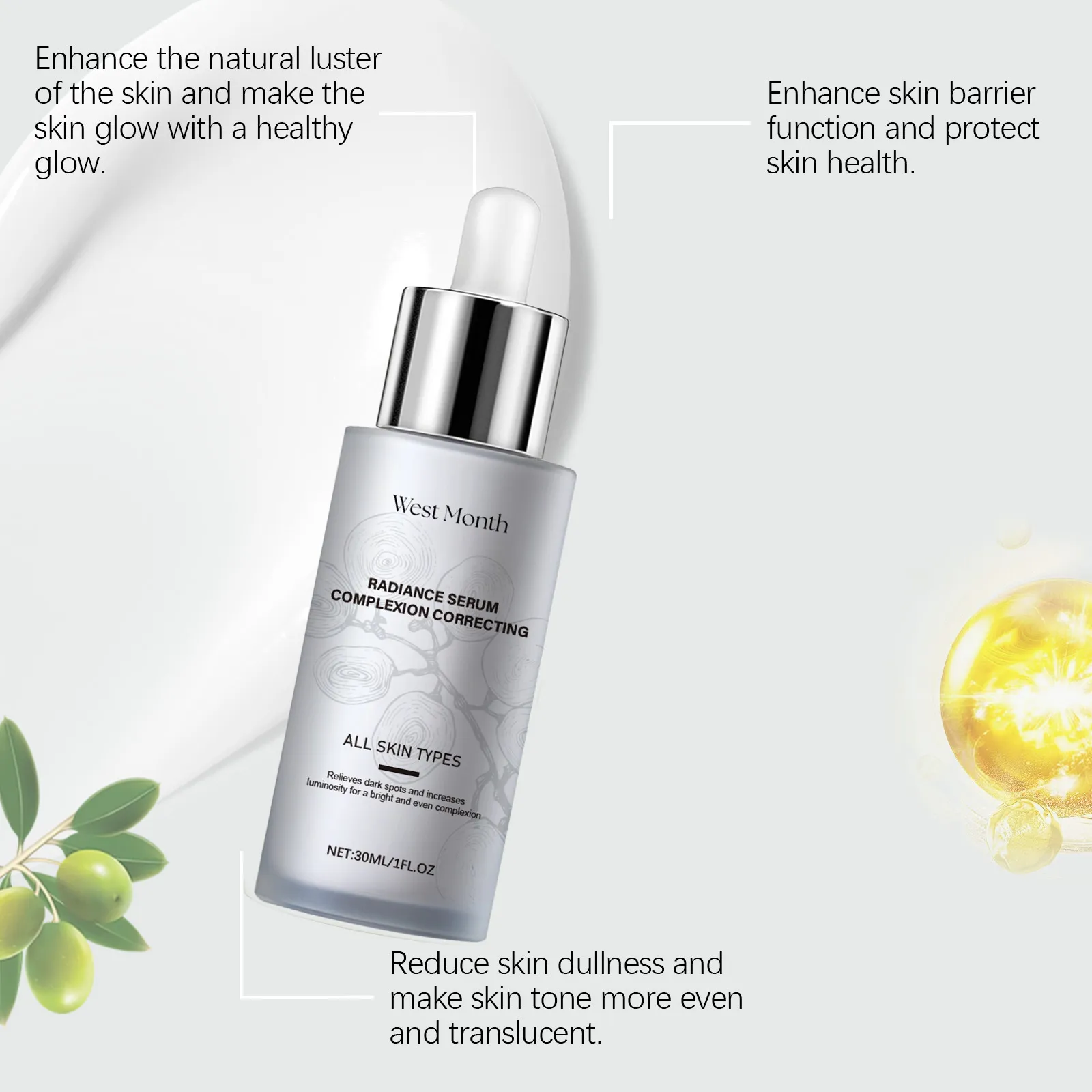 Ingredients: Water, nicotinamide, olive fruit extract, grape fruit extract, plant Squalane