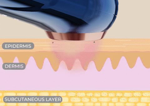 RF, also known as radio frequency waves, warm & penetrate the dermal layer up to 140°F to promote the remodeling & growth of collagen.