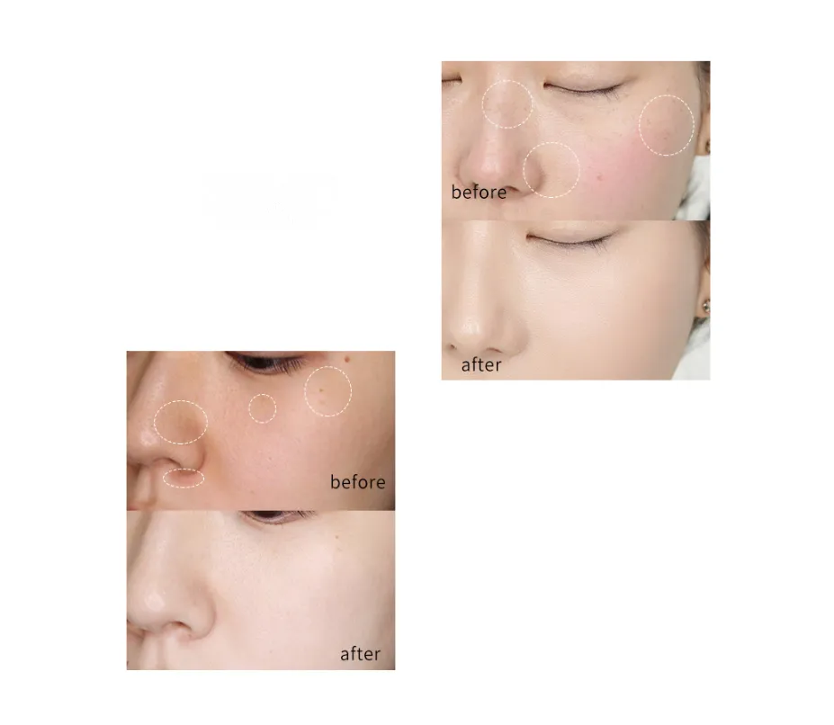 Pigmentation reduces spots and presents translucent porcelain white skin.