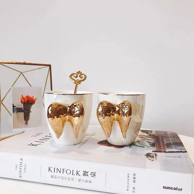 The standout feature of this ceramic cup is its golden angel wings, which are delicately attached to the sides of the cup. The wings are crafted with precision and finished in a gleaming golden hue, adding a touch of luxury and fantasy to the overall design. The cup’s body features a smooth ceramic finish, complementing the opulence of the wings.