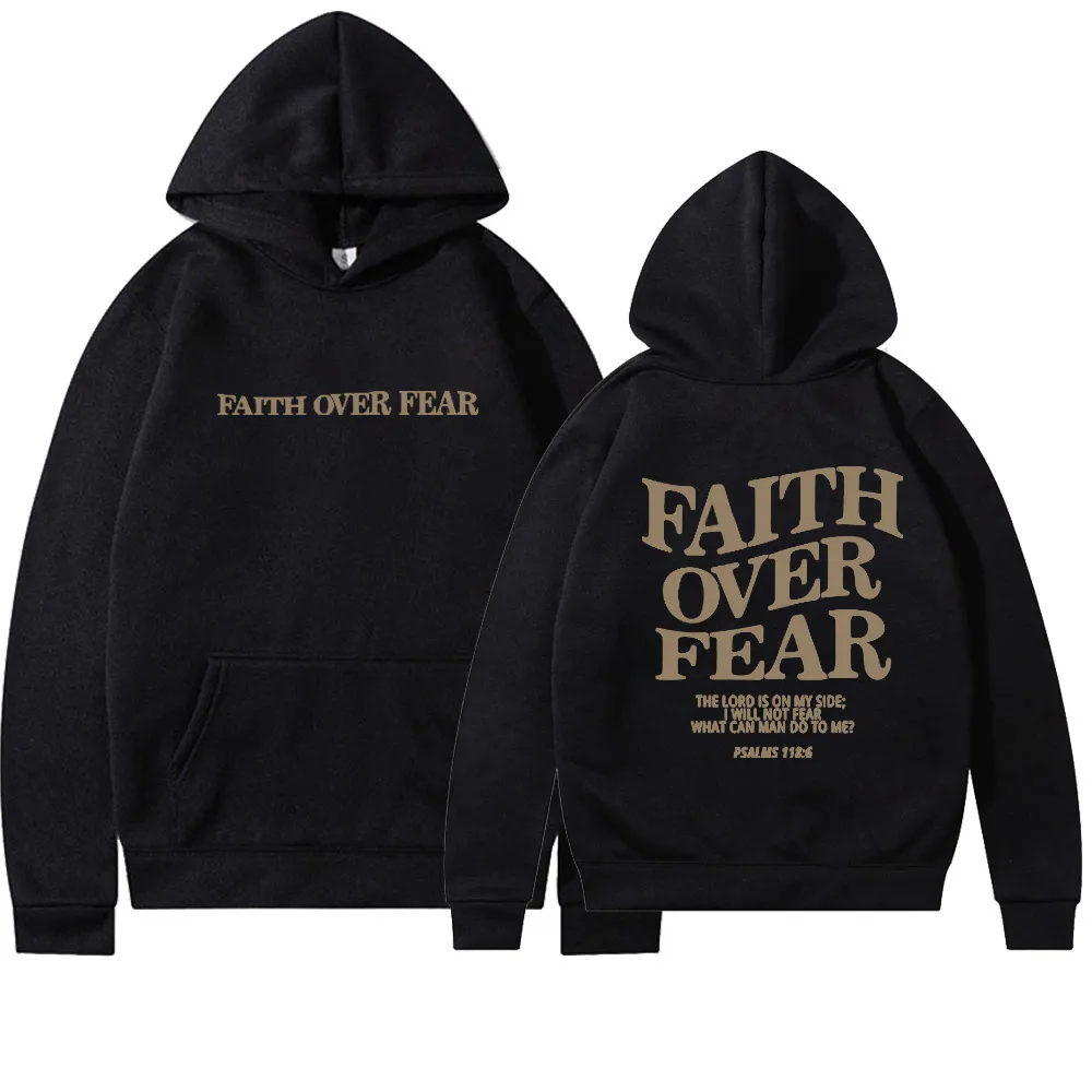 Express your faith with the "Faith Over Fear" Christian Hoodie. This unisex sweatshirt combines comfort with a meaningful message, perfect