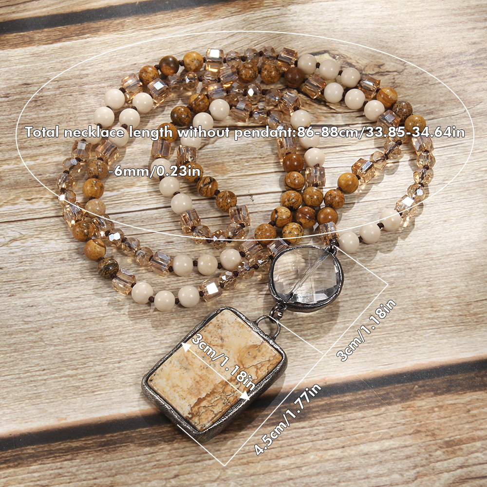Fashion Bohemian Natural Stone Glass Knotted Necklace