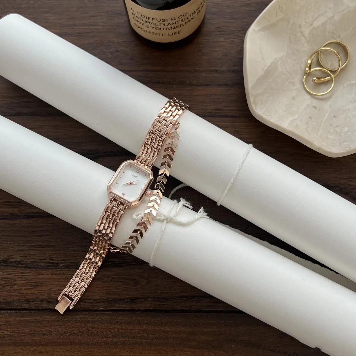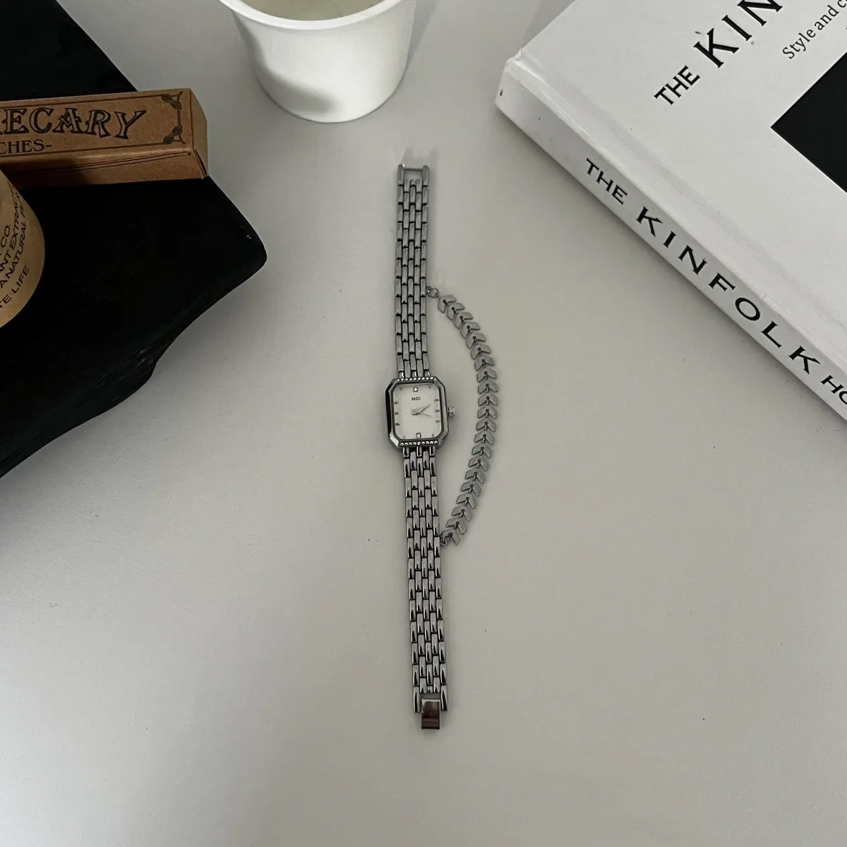 The watch features a sleek and stylish bracelet design that adds a touch of sophistication to your wrist. Its minimalistic dial complements the overall chic aesthetic, making it as much a piece of jewelry as it is a timepiece.
