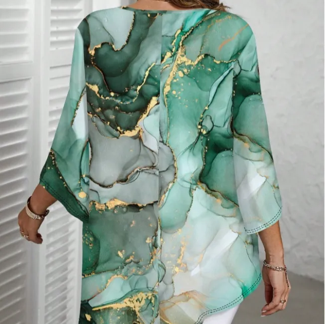 The Fashion Casual All-Match Marble Printed Round Neck Long Sleeve combines contemporary fashion with everyday comfort. Its marble print adds flair to simple outfits, helping you look stylish without trying too hard.