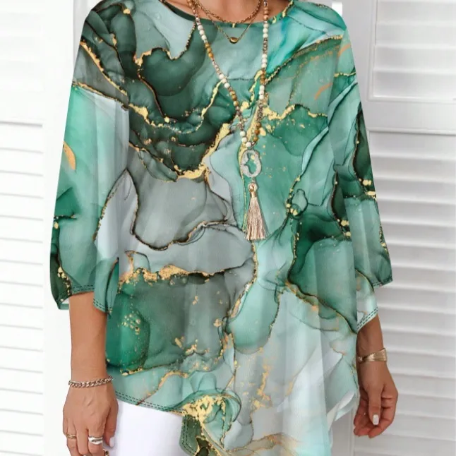 The Fashion Casual All-Match Marble Printed Round Neck Long Sleeve is a stylish top that blends comfort with modern aesthetics. Featuring a unique marble print design, it adds a sophisticated yet relaxed look to your daily outfits. The classic round neckline and long sleeves ensure a flattering fit for all body types, making it suitable for various occasions, from casual coffee dates to relaxed office environments.