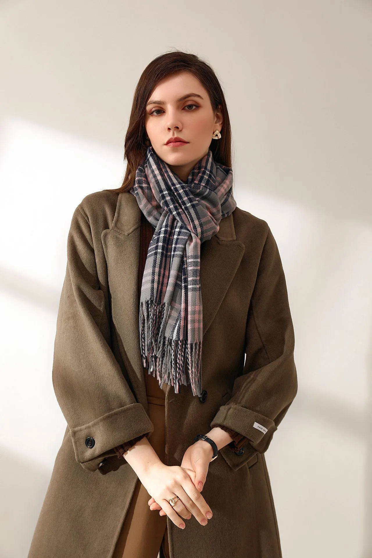 The Fashion Classic Plaid Cashmere Scarf features a traditional plaid pattern that never goes out of style. With its balance of bold and muted tones, this scarf easily complements any outfit, adding a sophisticated touch to your look. Plaid is a versatile design that pairs effortlessly with a wide range of clothing, from casual jeans and jackets to formal dresses and coats. This scarf is a true wardrobe staple that can be worn year after year.