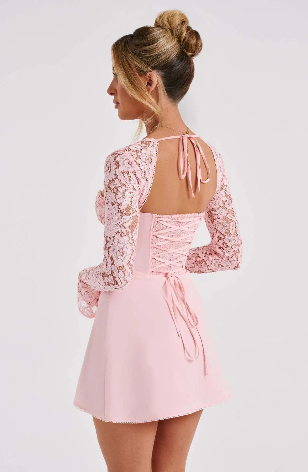 Embrace the Y2K fashion trend with this stunning Fashion Corset Lace Long Sleeve Dress. Its backless design, lace-up corset, and elegant lace fabric make it a must-have for any fashion-forward individual. Whether you're dressing up for a special occasion or simply want to add a touch of glamour to your everyday wardrobe, this dress is the perfect choice.