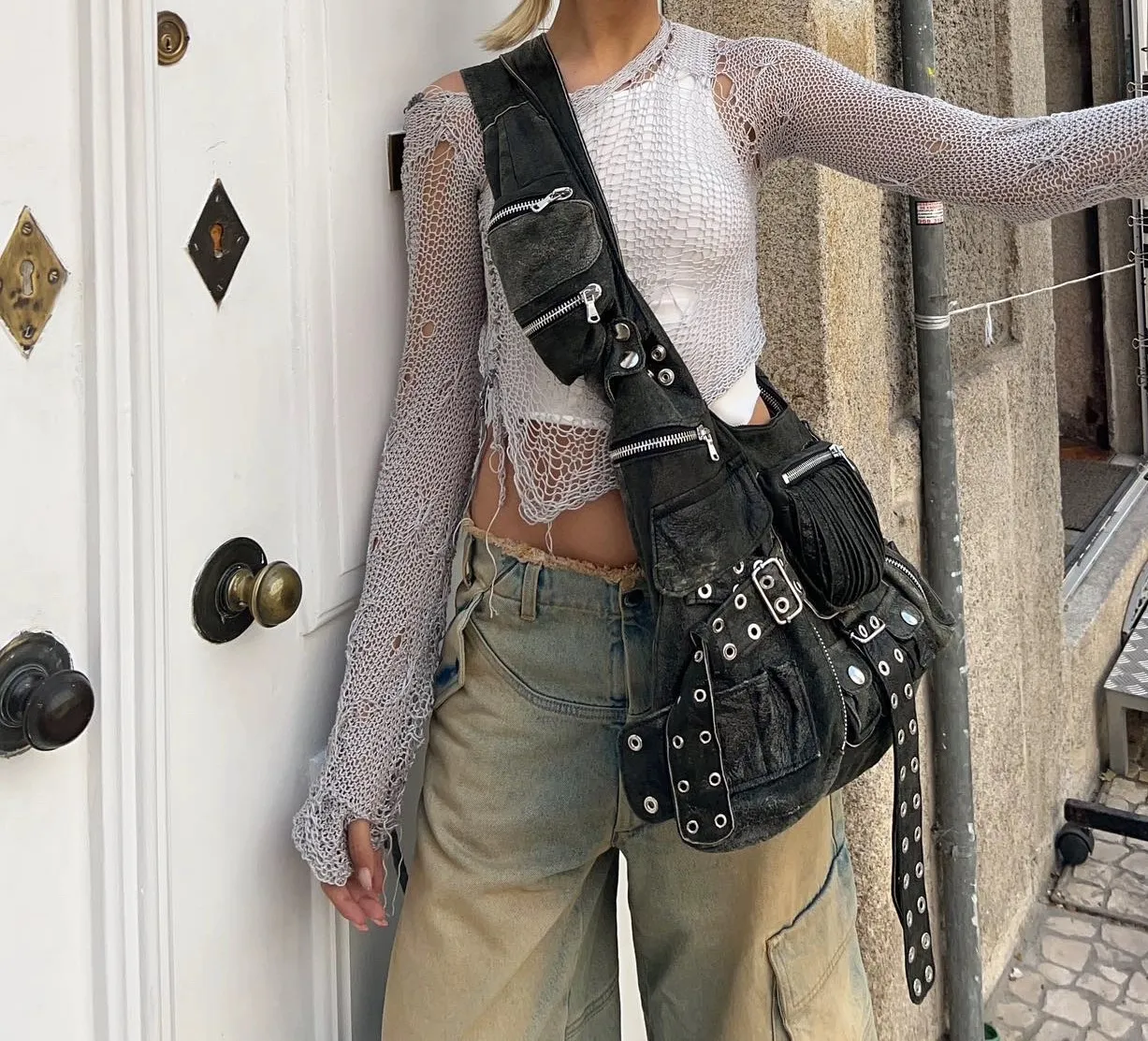 The standout feature of this bag is its wide, knotted shoulder strap. Not only does it provide an edgy, fashionable look, but it also ensures comfort during long hours of wear.