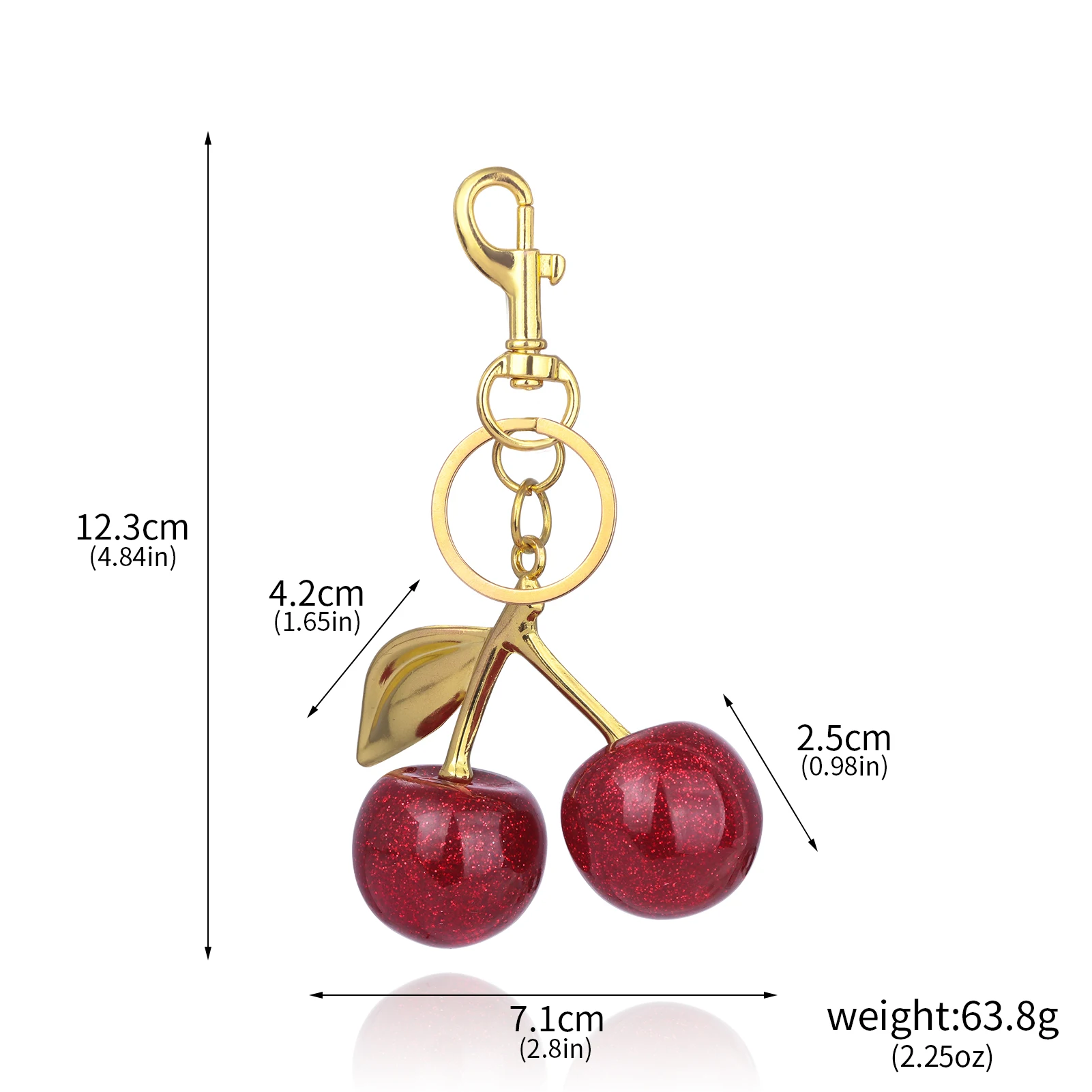 The realistic red cherry design is vibrant and eye-catching, making it a statement piece that adds character to any bag or keyring. It’s a fun, quirky accessory that stands out among typical keychains.