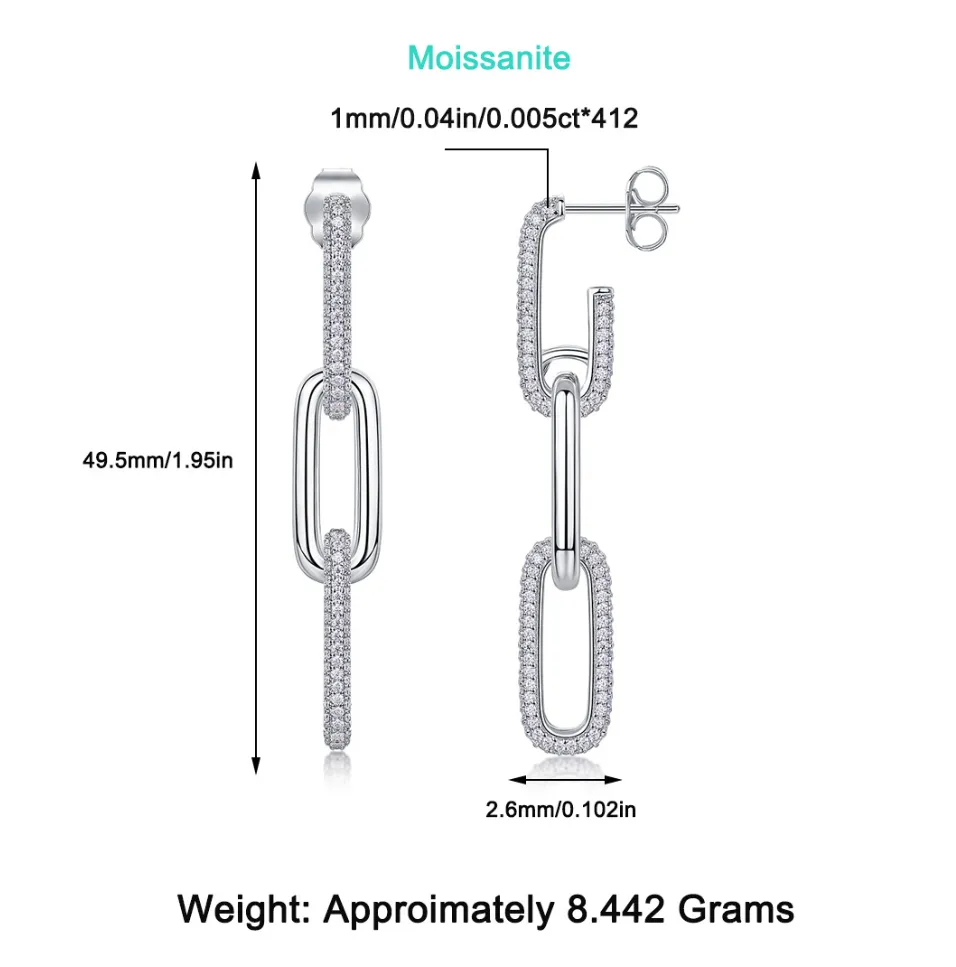 At the heart of these earrings are Moissanite stones, renowned for their stunning brilliance and sparkle. Moissanite is a premium gemstone that rivals the beauty of diamonds, offering exceptional fire and clarity. The stones used in the Fashion Geometric Silver Earrings Moissanite reflect light beautifully, adding a dazzling effect to the geometric design and giving the earrings a sophisticated touch.