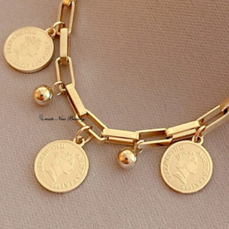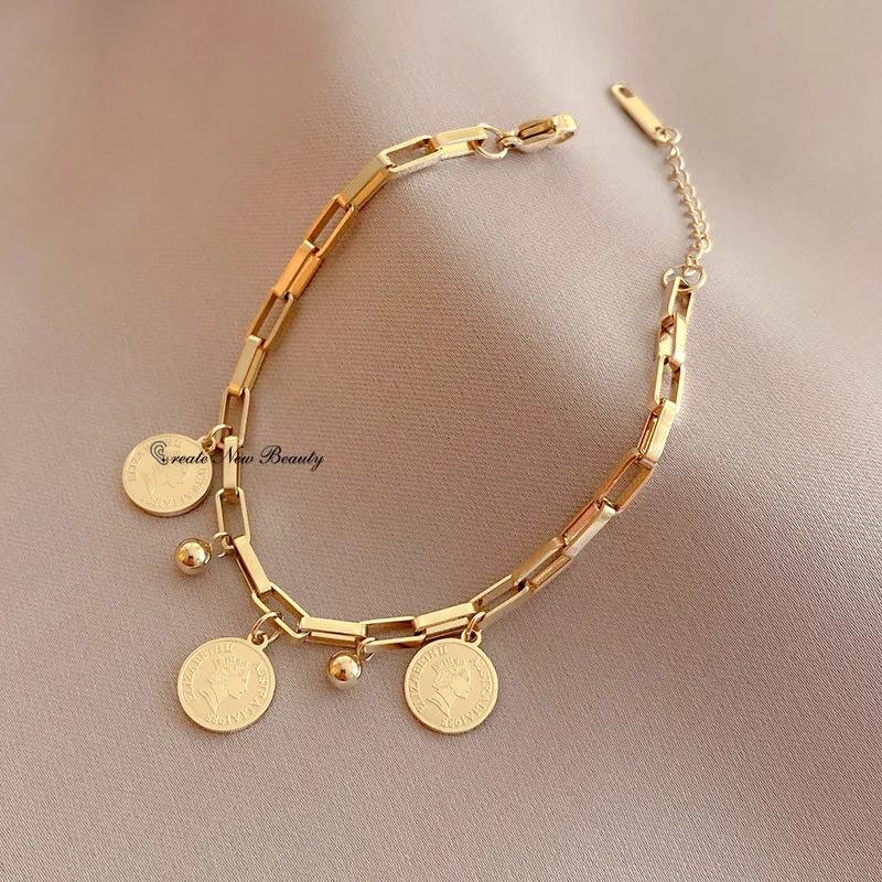 Fashion Gold-Color Bracelet with Round Sign Pendant