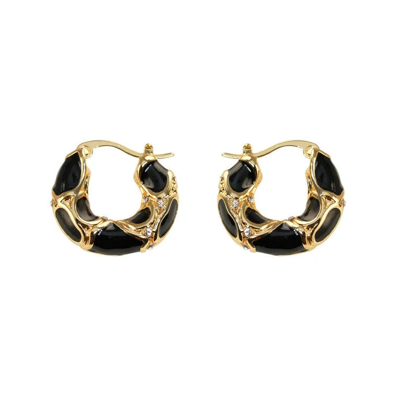The high-quality enamel coating ensures vibrant, long-lasting color, while the gold plating adds a touch of sophistication and luxury. The small hoop design makes these earrings lightweight and easy to wear, offering comfort without compromising on style. Whether you're dressing up for a night out, a business event, or simply enhancing your everyday wardrobe, these earrings are versatile enough to complement a variety of looks. Their creative design makes them a standout accessory that can elevate any ensemble, giving you a chic, fashionable edge.