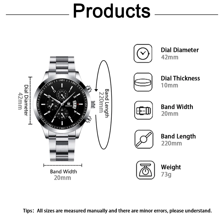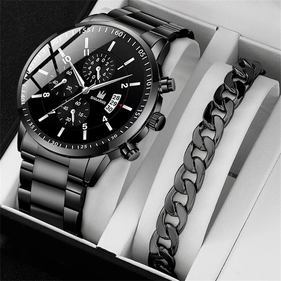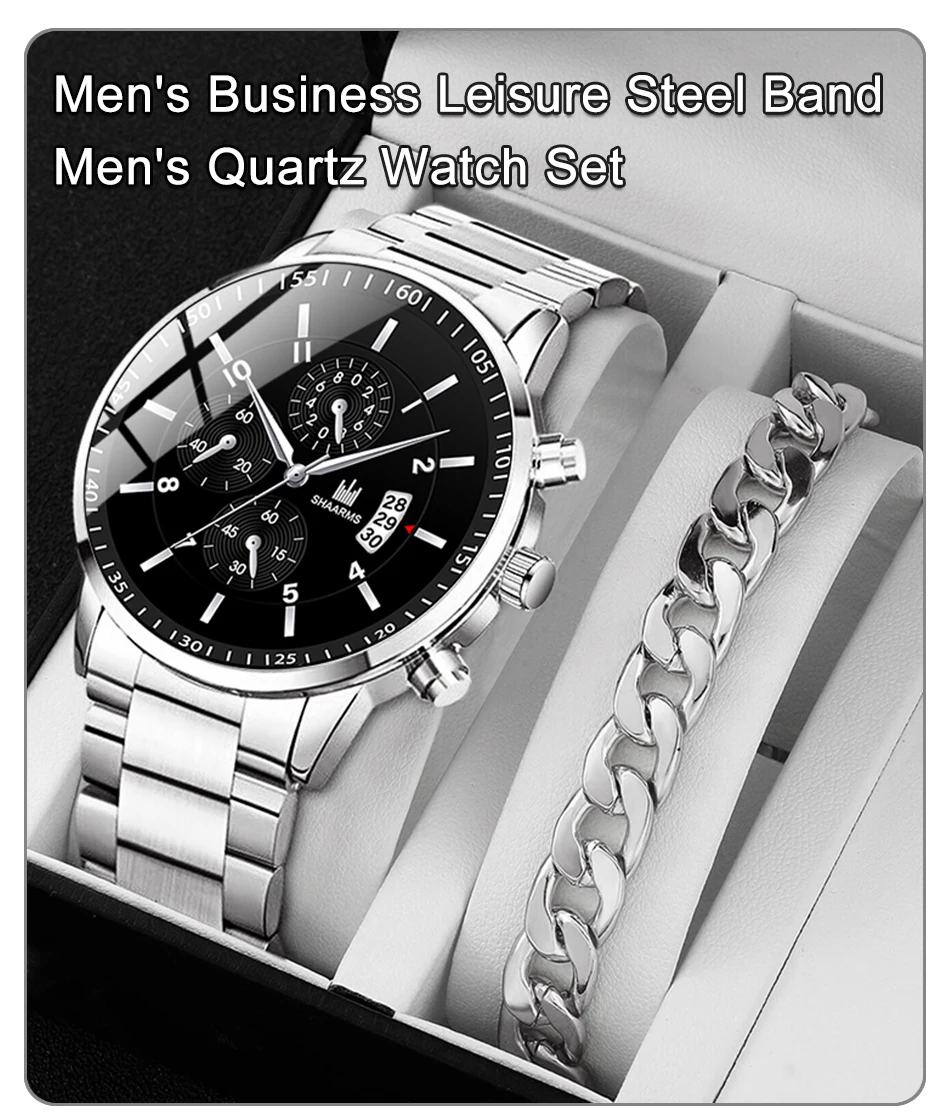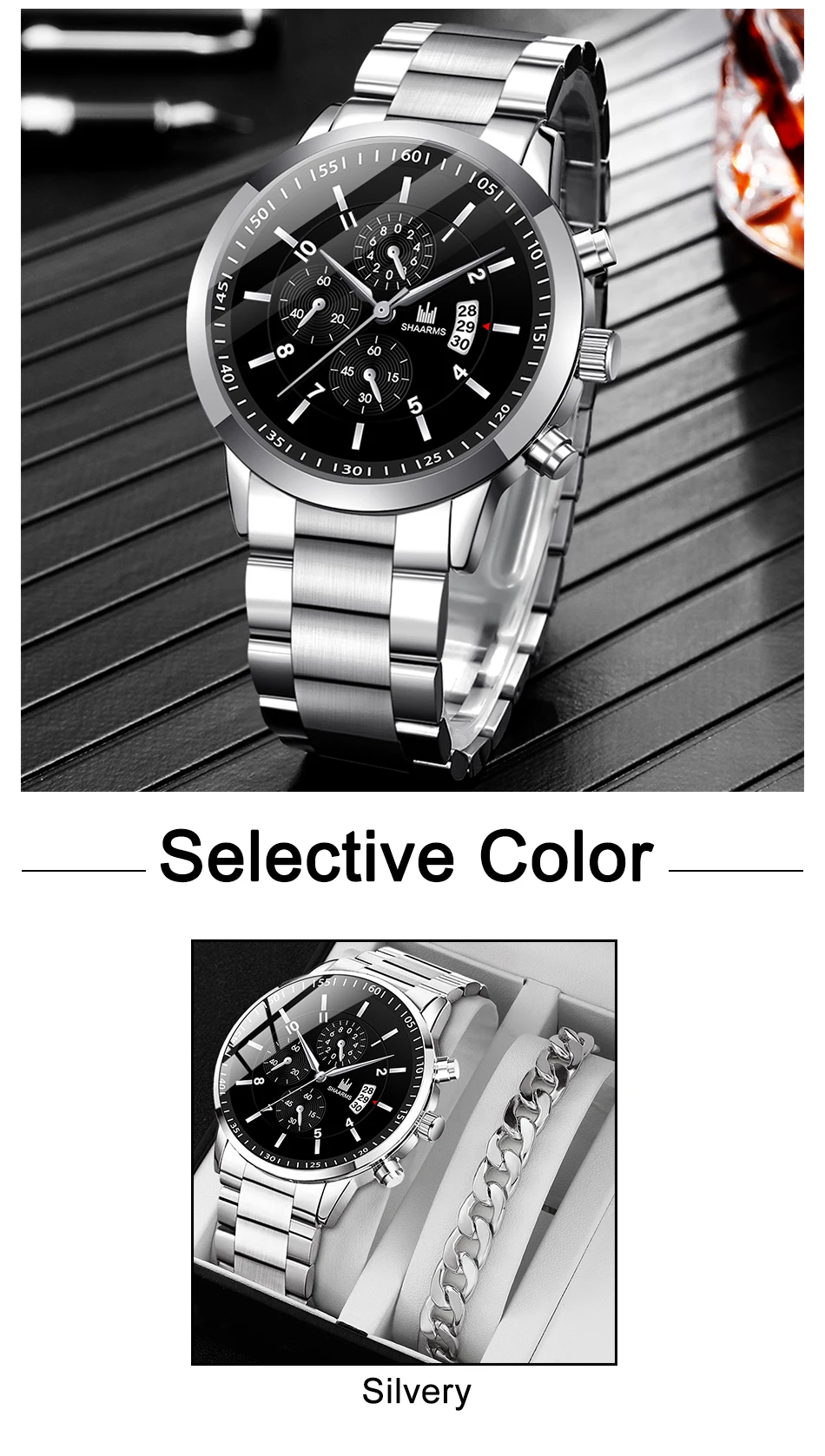 The Fashion Men's Stainless Steel Luxury Quartz Wristwatch is a timeless piece that combines modern design, precision craftsmanship, and versatility. Designed for the modern man, this wristwatch offers a refined blend of elegance and practicality, making it perfect for both business and casual occasions. Paired with a matching bracelet set, it elevates your style with effortless sophistication.