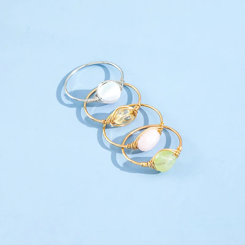 Fashion Niche Light Luxury Jewelry Natural Stone Ring Set Of 4pcs