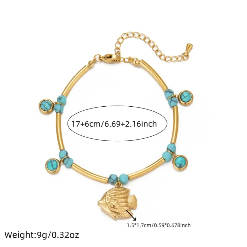 The turquoise stones give this bracelet a vibrant, tropical aesthetic, perfect for those who love to embrace the oceanic theme.