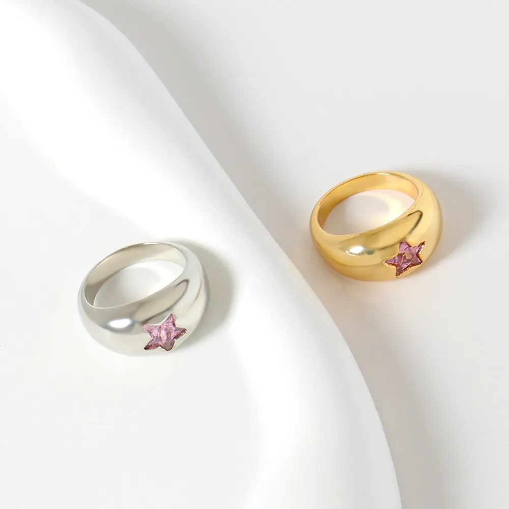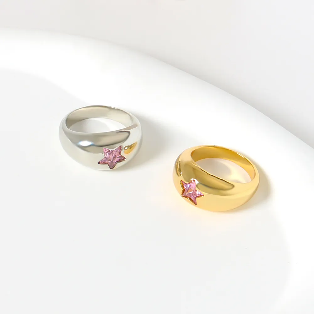 Color: F4-5 Gold Pink Five Star ring, F4-6 White Gold Pink Five Star ring