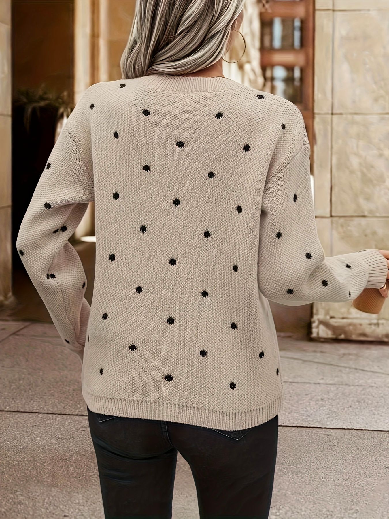 Fashion Polka Dot Round Neck Sweater