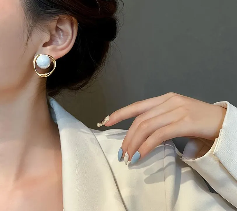 Fashion S925 Silver Needle Pearl Stud Earrings Women