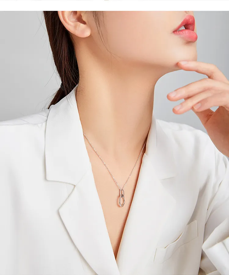 Fashion S925 Sterling Silver Geometric Double Ring Necklace, Simple And Advanced Sense Of Platinum Plated Clavicle Chain