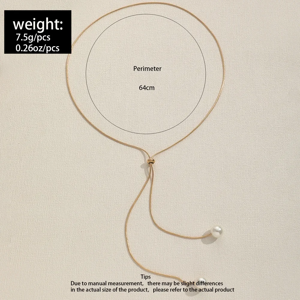 The Fashion Simple Gold Color Pearl Tassel Necklace is a stunning blend of elegance and minimalism, designed to elevate any outfit. Featuring a gold-tone chain paired with a delicate pearl accent and a long tassel pull design, this clavicle chain necklace is perfect for women who value timeless yet contemporary jewelry. The unique pull design allows for adjustable length, making it versatile and suitable for both casual wear and formal occasions.