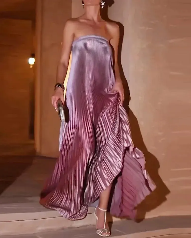 Fashion Sleeveless Tube Top Mermaid Color Pleated Dress