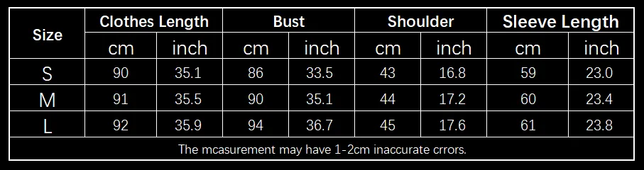 allow 2-3cm differences due to manual measurement.