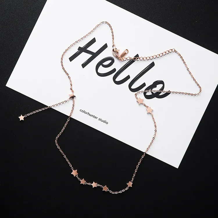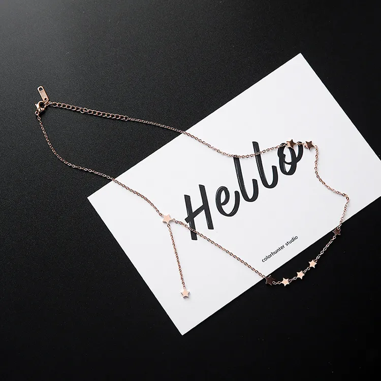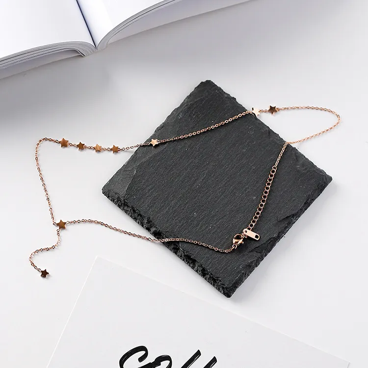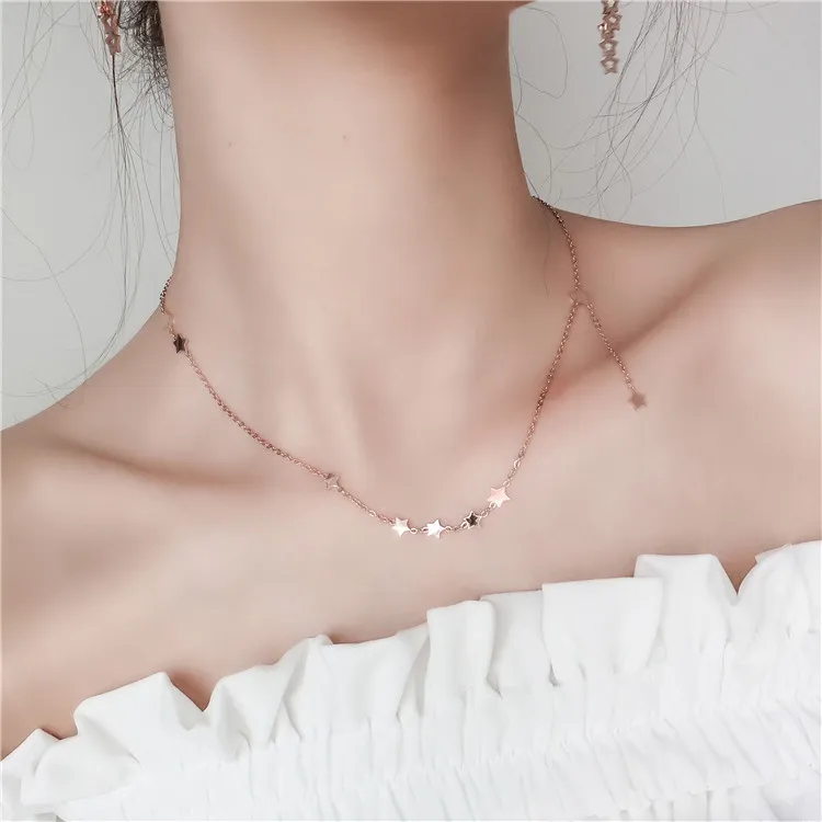 Fashion temperament stars little side fringed titanium steel rose gold clavicle chain