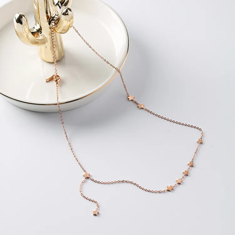 Fashion temperament stars little side fringed titanium steel rose gold clavicle chain