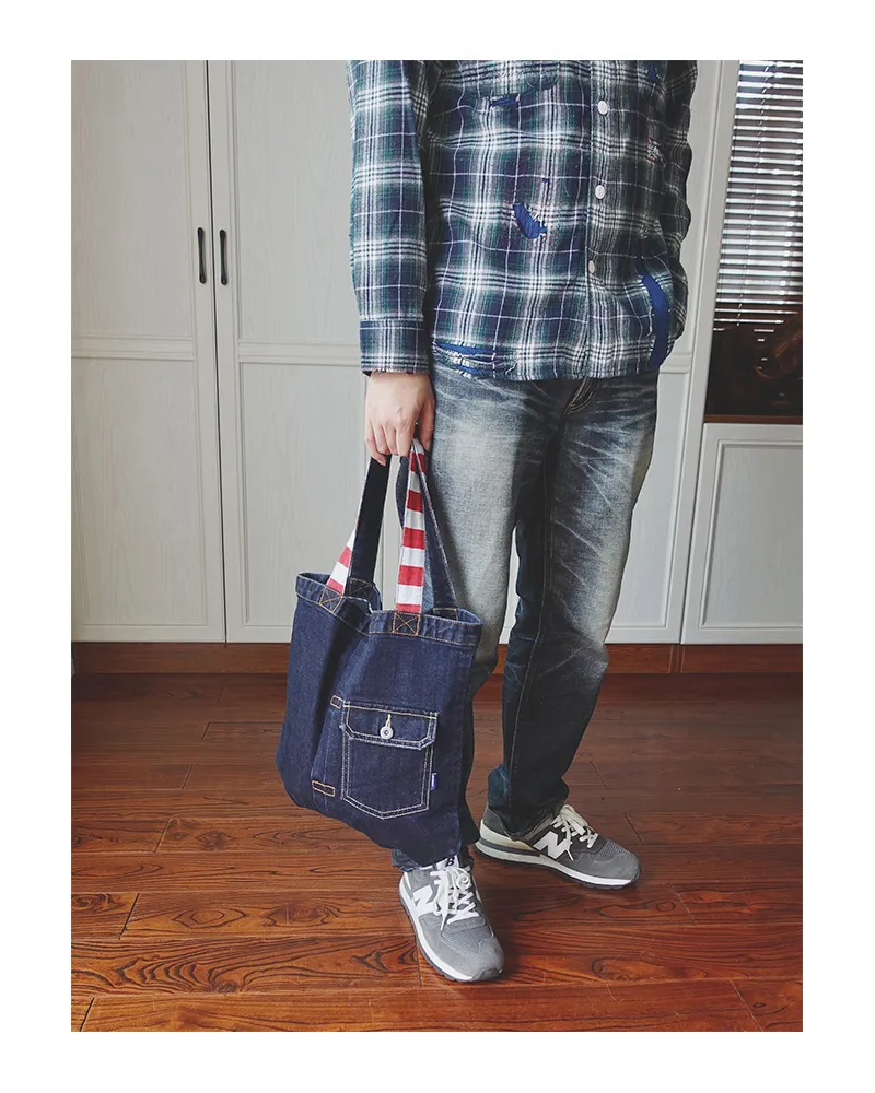 Whether you're headed to the office, a casual outing, or a trip to the gym, this tote bag is versatile enough to complement any look. The sturdy handles ensure easy carrying, while the durable denim fabric guarantees longevity and wearability. This tote is the perfect blend of fashion and utility for the modern man.