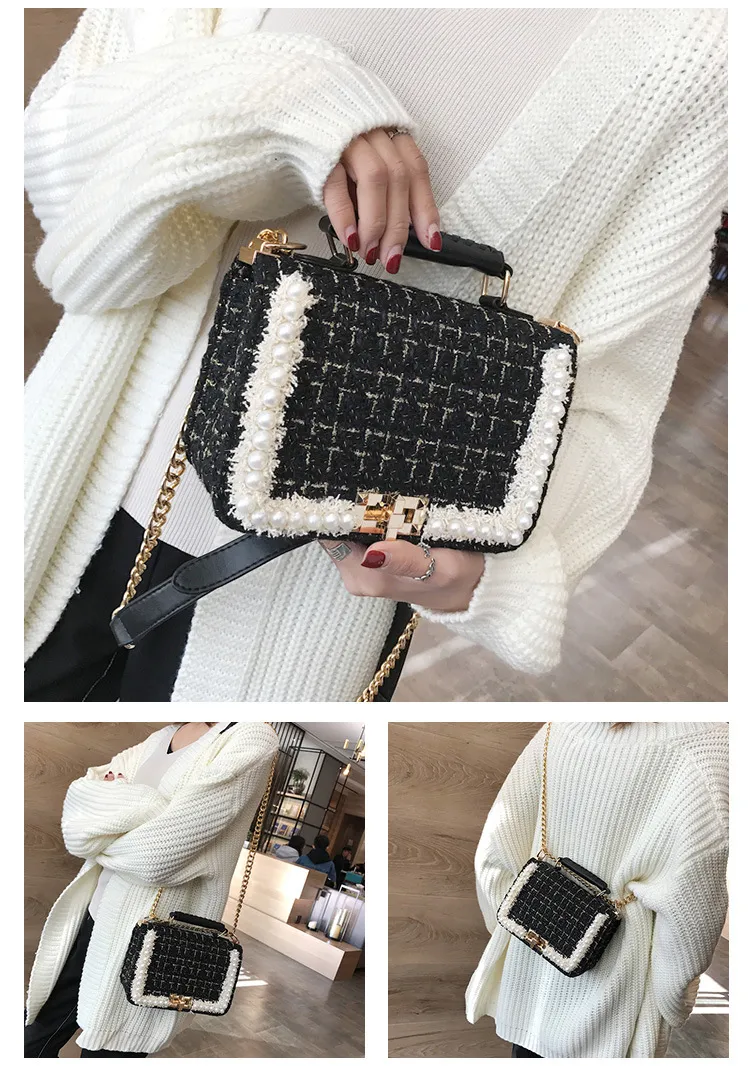 Fashion Woolen Personality Handbag Girl Plaid Messenger Bag