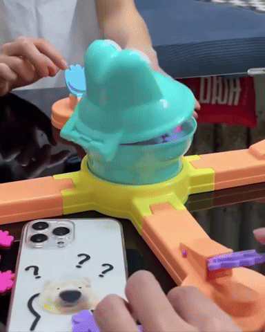 Mr. Frog doesn't sit still; his mouth opens and closes continuously, while his head spins around and around. This makes it even more challenging to catapult the insects into his mouth. Who will feed the frog the most flies?