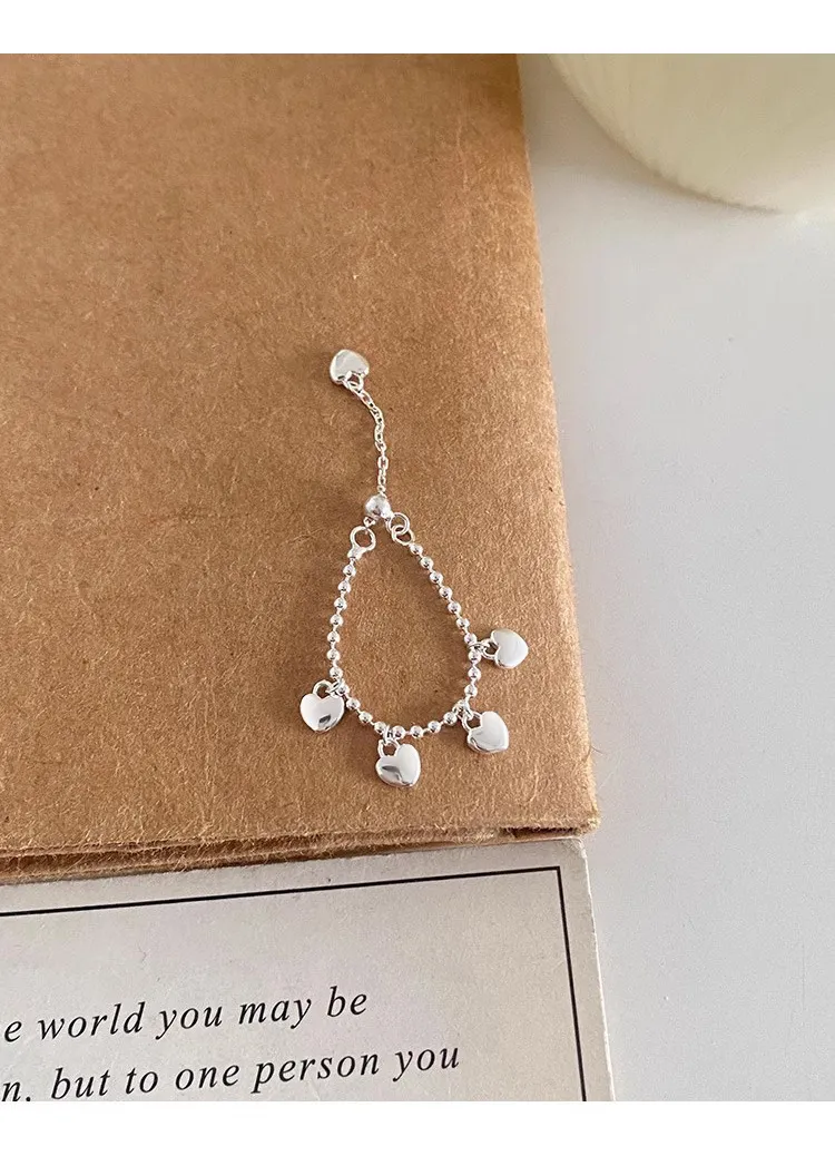 Female Minimalist S925 Pure Silver Heart-shaped Chain Ring