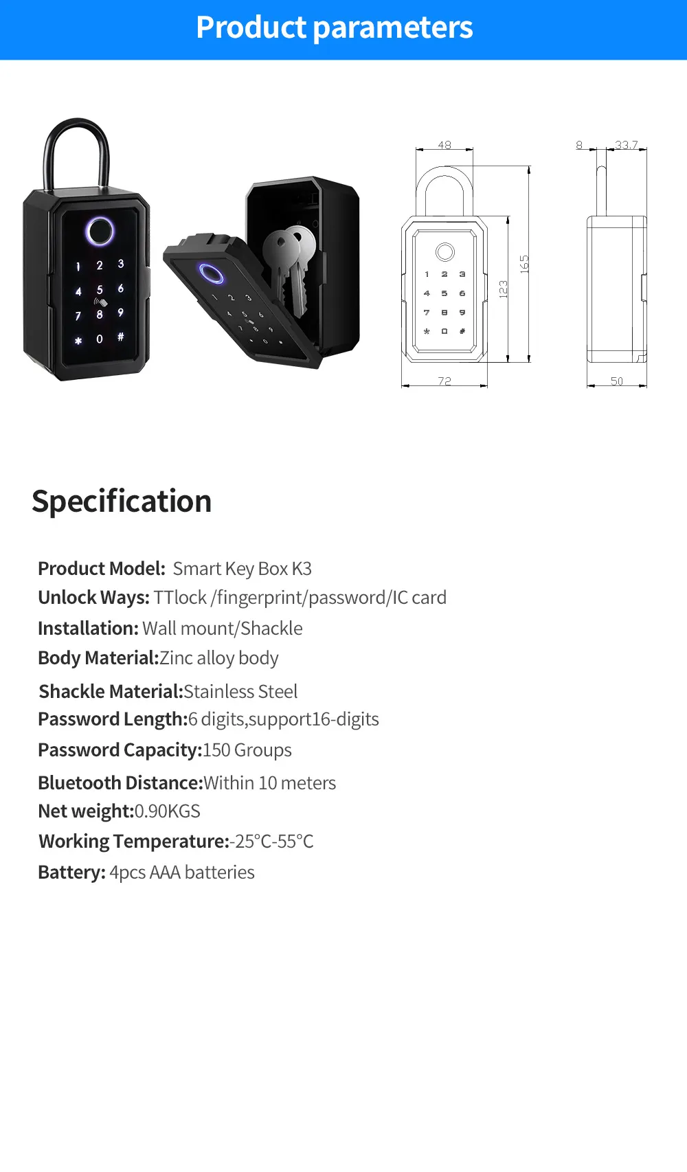 Key Features of the Fingerprint Keys' Password Storage Box Graffiti Wifi Ttlock