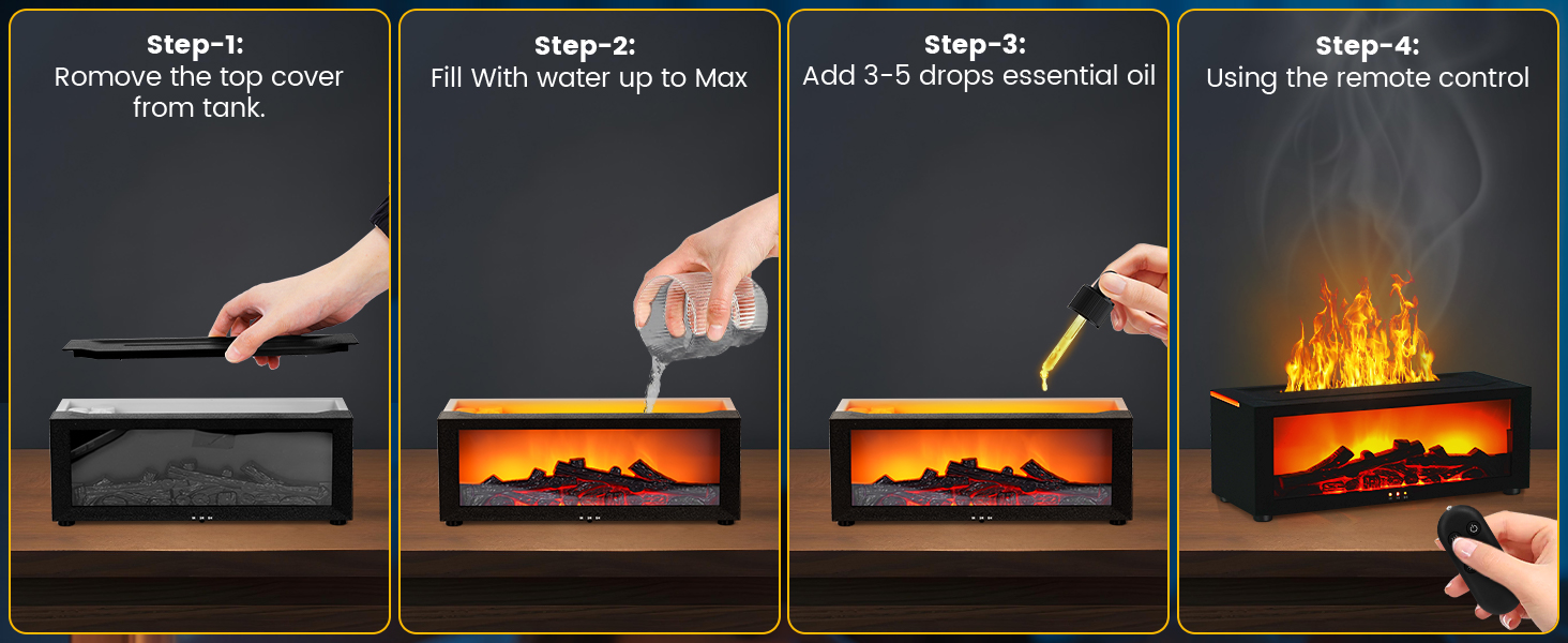 This diffuser is designed with safety in mind. It features an automatic shut-off function that kicks in when the water level is low, preventing any risk of overheating. The easy-to-use control buttons allow you to adjust the settings for the ideal mist output and lighting intensity. With a simple setup and hassle-free operation, the Fireplace Oil Diffuser is a perfect addition to your wellness routine.