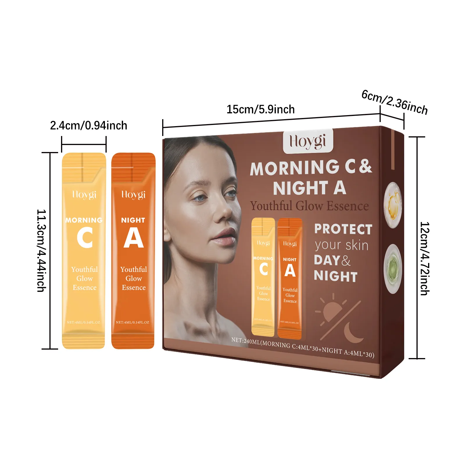 Ingredients: Early C essence: water, vitamin C, hyaluronic acid, nicotinamide, glycerin. Late A essence: water, vitamin E, hyaluronic acid,