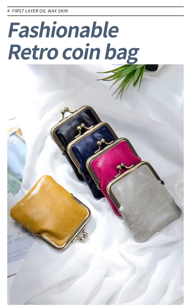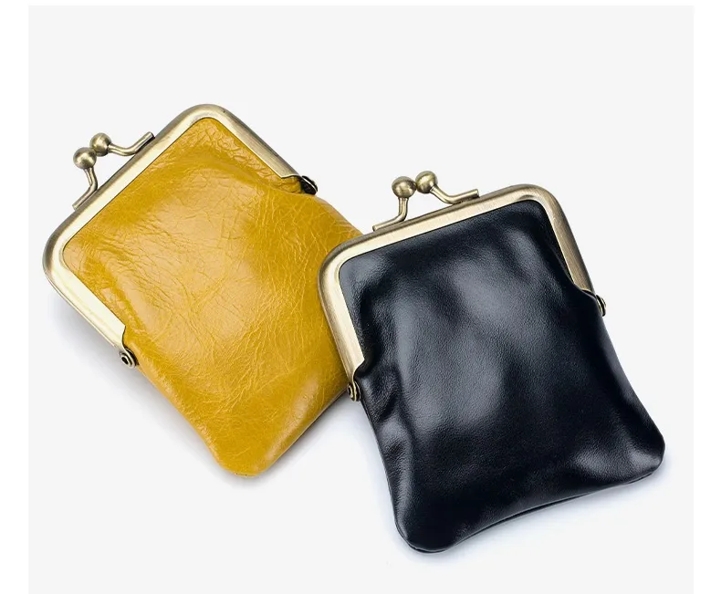 First Layer Oil Wax Cowhide Retro Compact Clip Coin Purse
