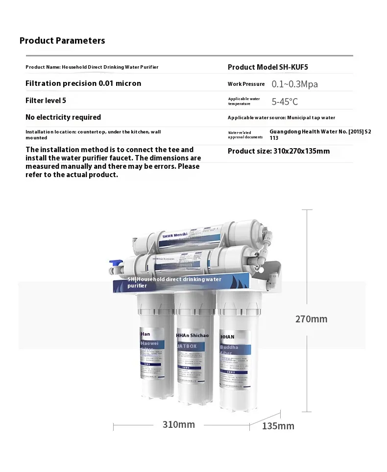 Five-level Direct Drink Water Purifier Household Kitchen Ultrafiltration Filter