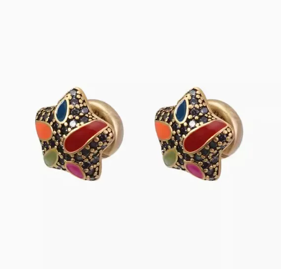 Five Pointed Star Enamel Earrings, Light Luxury