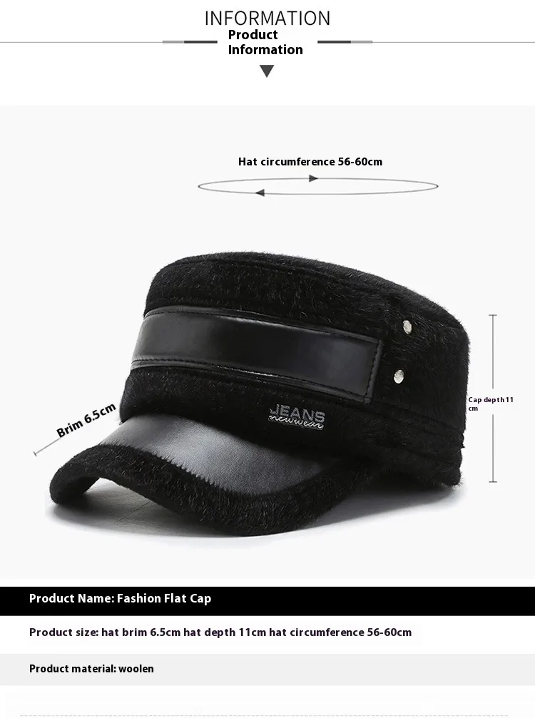 Fleece-lined Earflaps Mink-like Flat-top Cap Leisure Cold-proof Thermal Cotton Hat