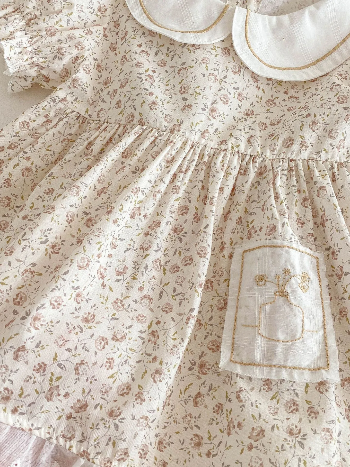 Care Instructions: Machine washable on a gentle cycle, tumble dry low or air dry to preserve the fabric and details