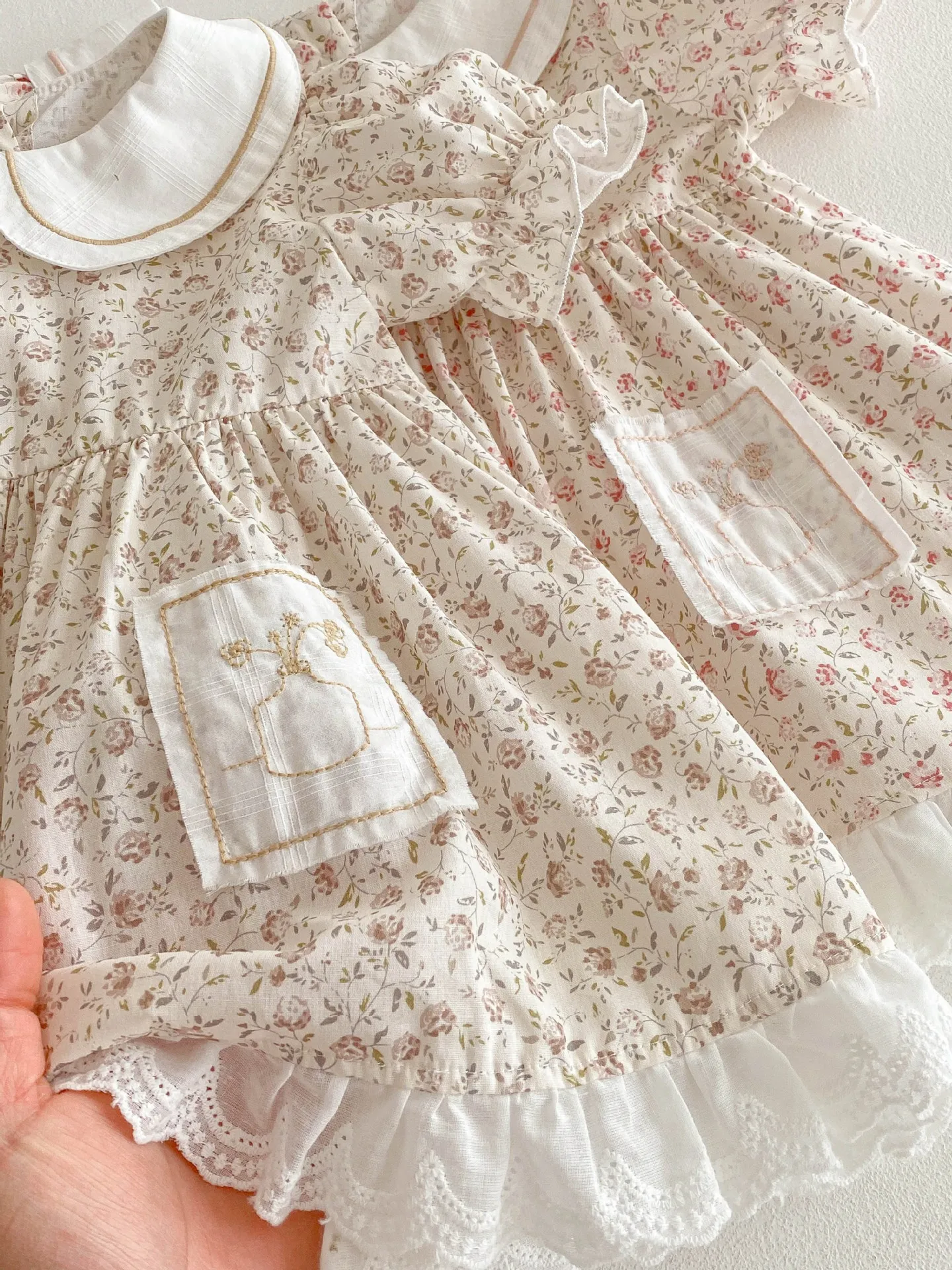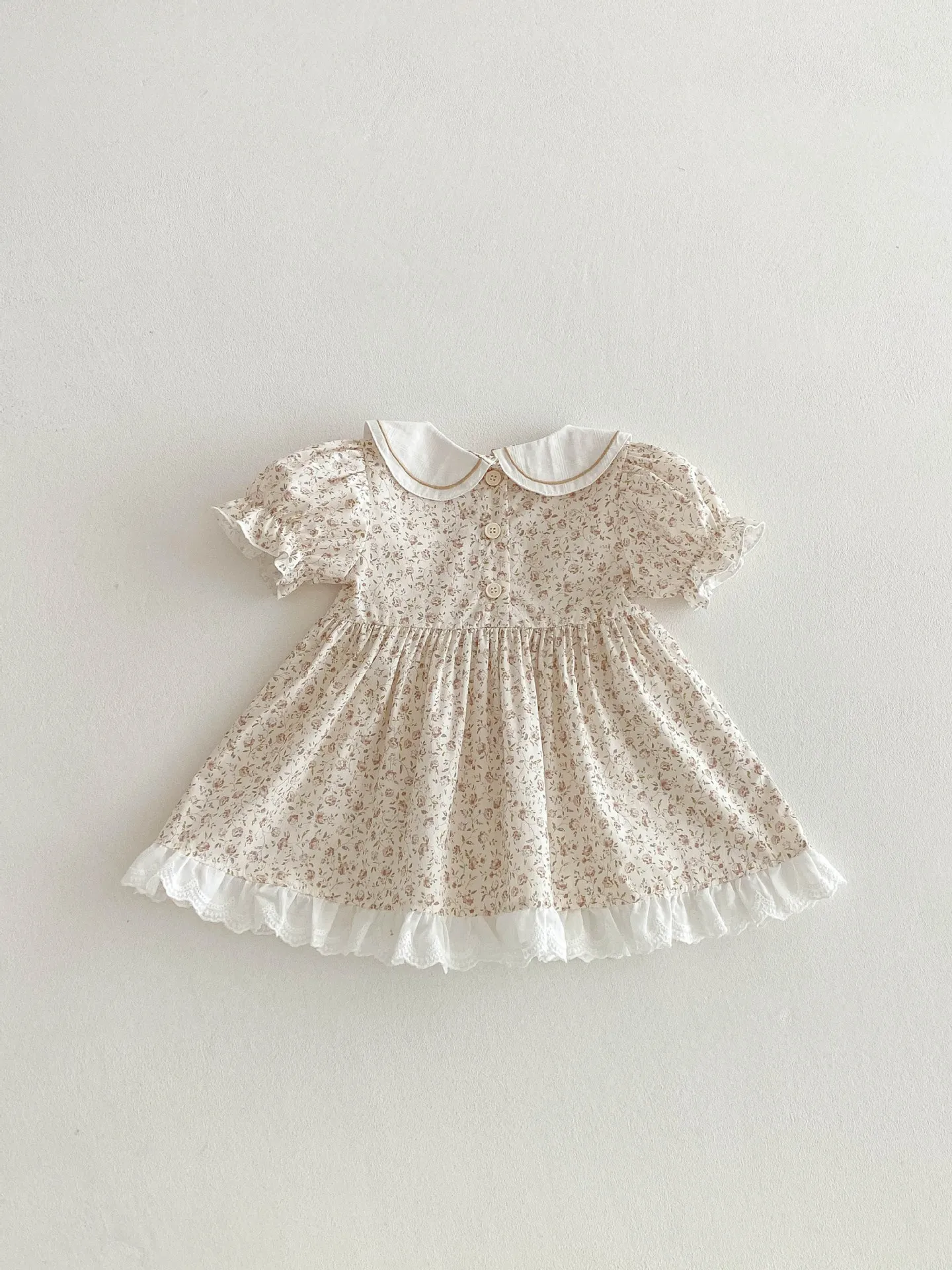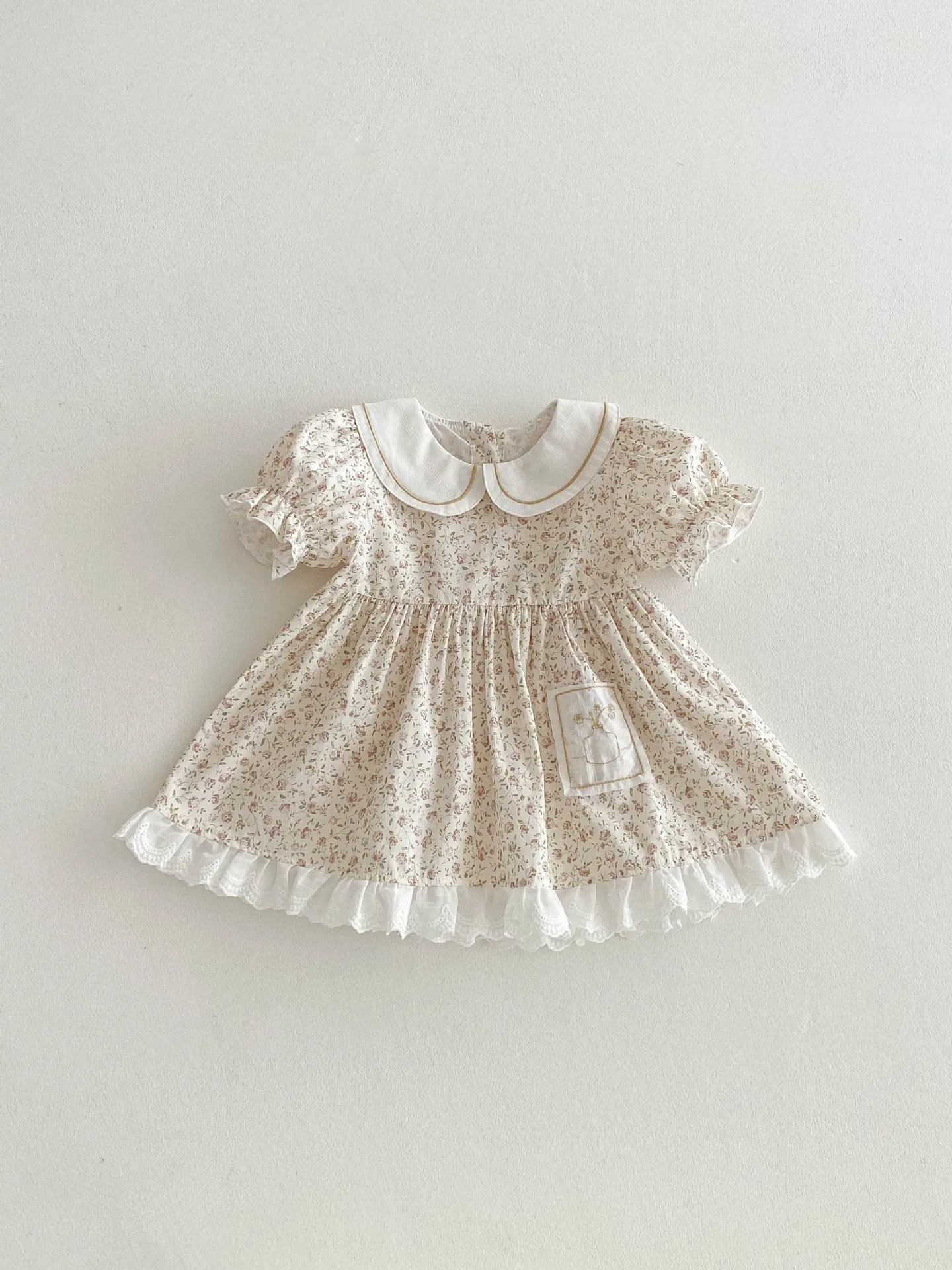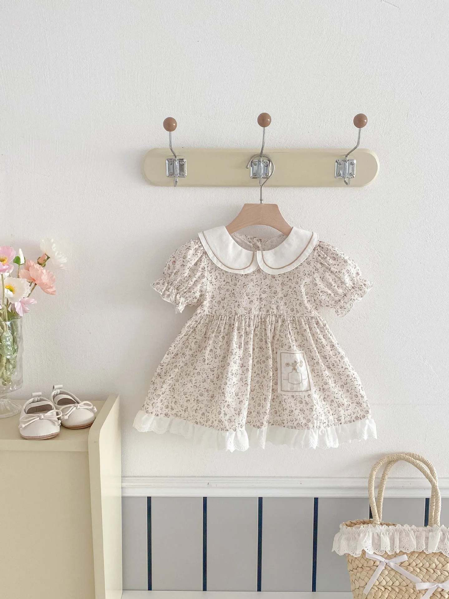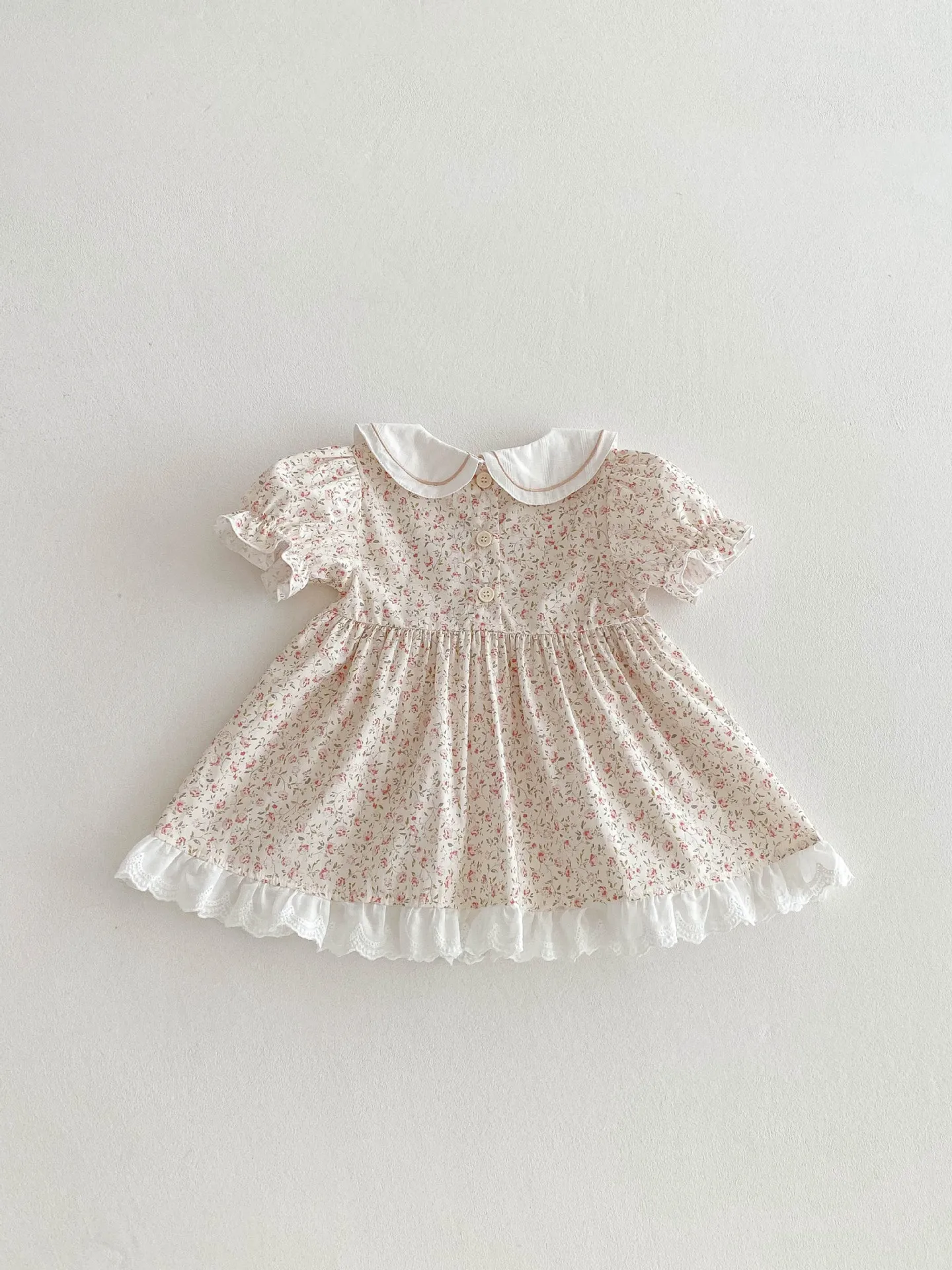 - Design: Floral print with lace, bow, or frill accents