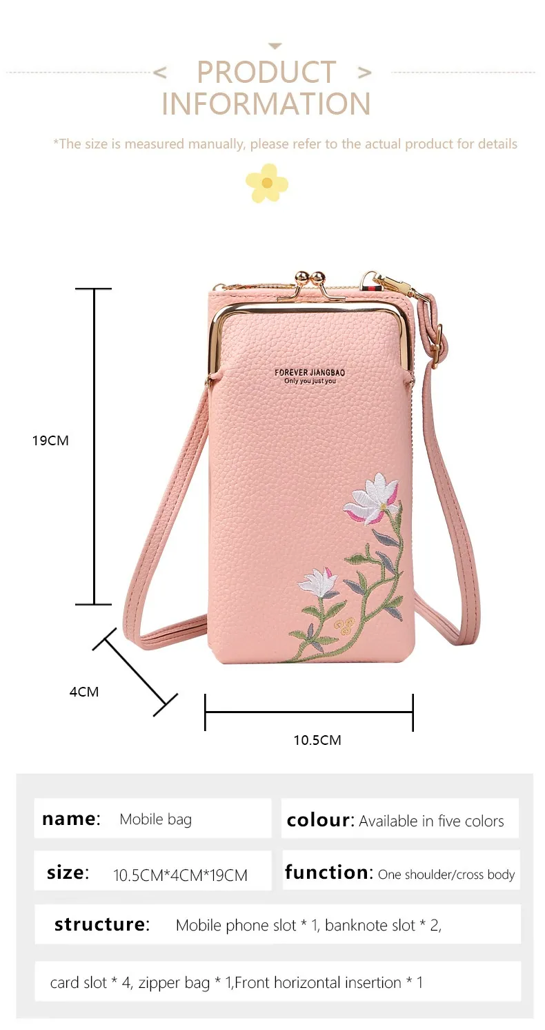 Stay organized and stylish with the Flower Embroidery Phone Bag with Lock Buckle. Order now for a chic, functional crossbody bag that’s perfect for your next outing or event!
