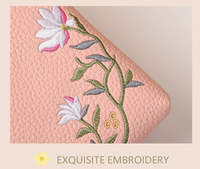 Add a touch of elegance to your accessories collection with the Flower Embroidery Phone Bag with Lock Buckle, a stylish and practical bag perfect for holding your phone and small essentials. This crossbody bag features intricate floral embroidery, a lock buckle for secure closure, and a versatile design that allows it to be worn over the shoulder or as a crossbody. Ideal for outdoor activities, casual outings, or everyday use, this long wallet-style bag is the perfect blend of fashion and function.